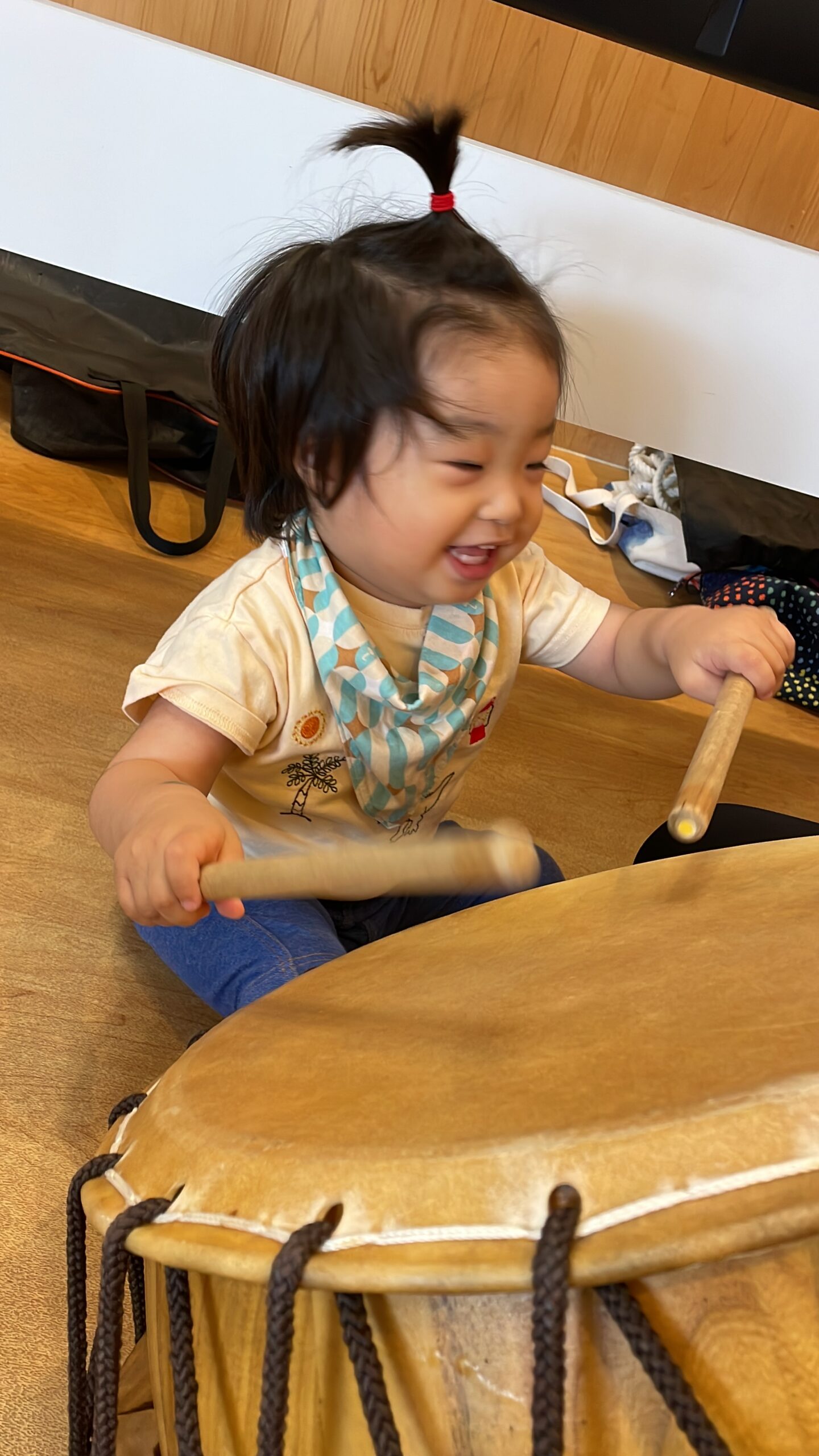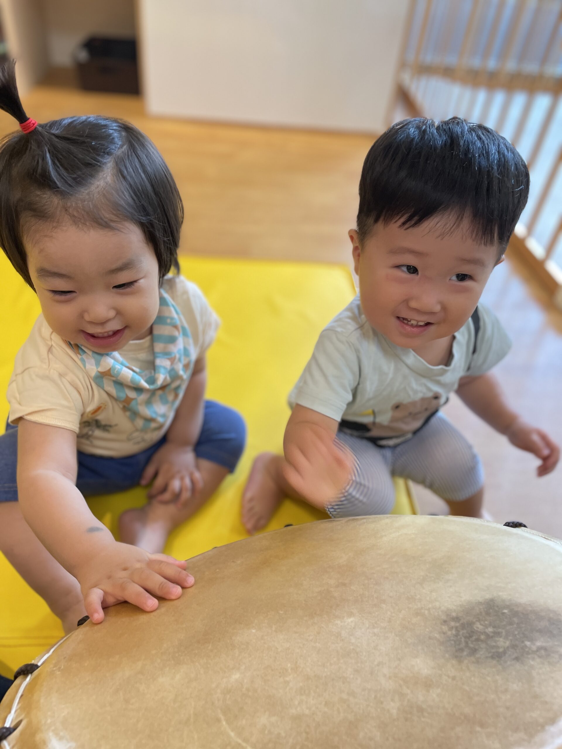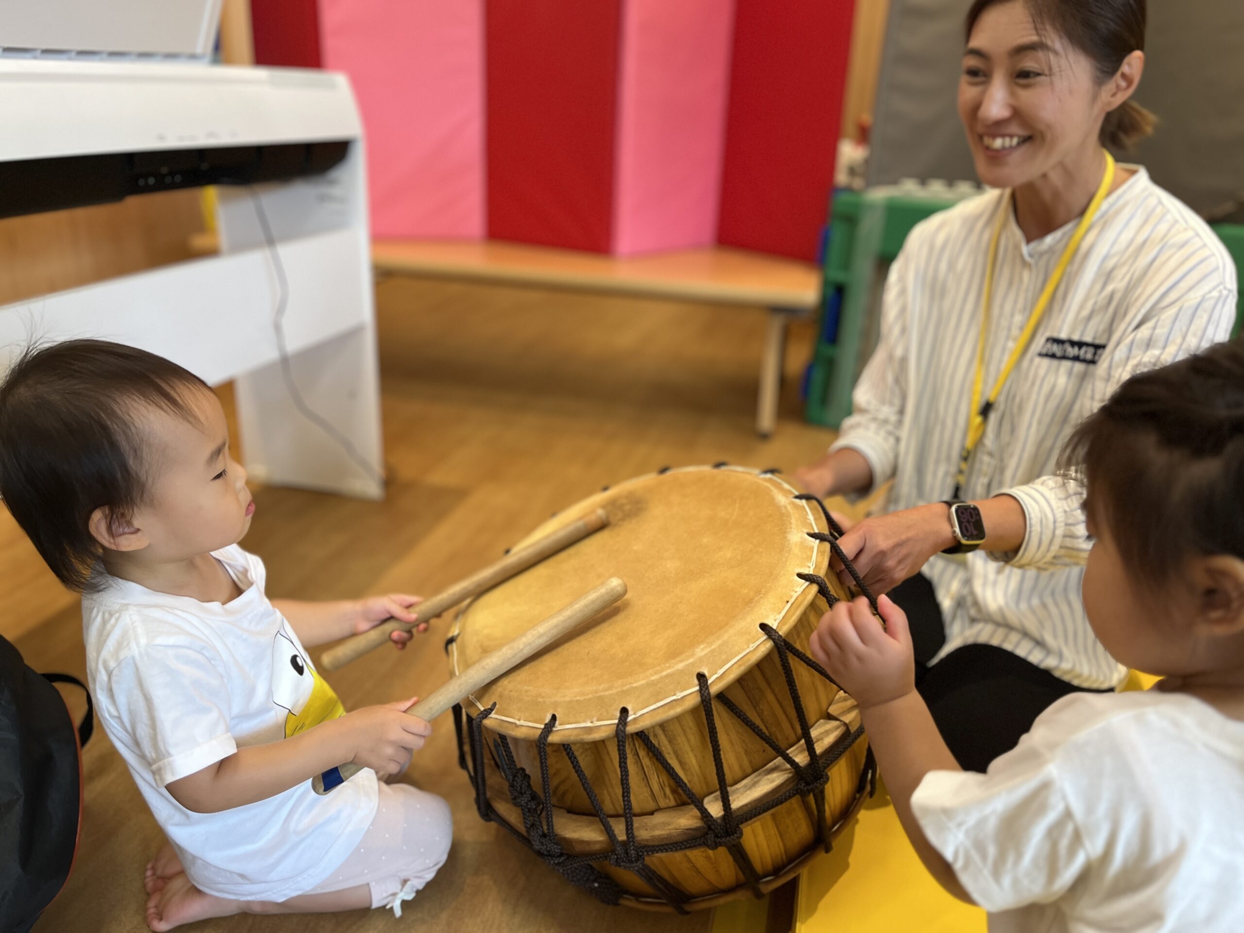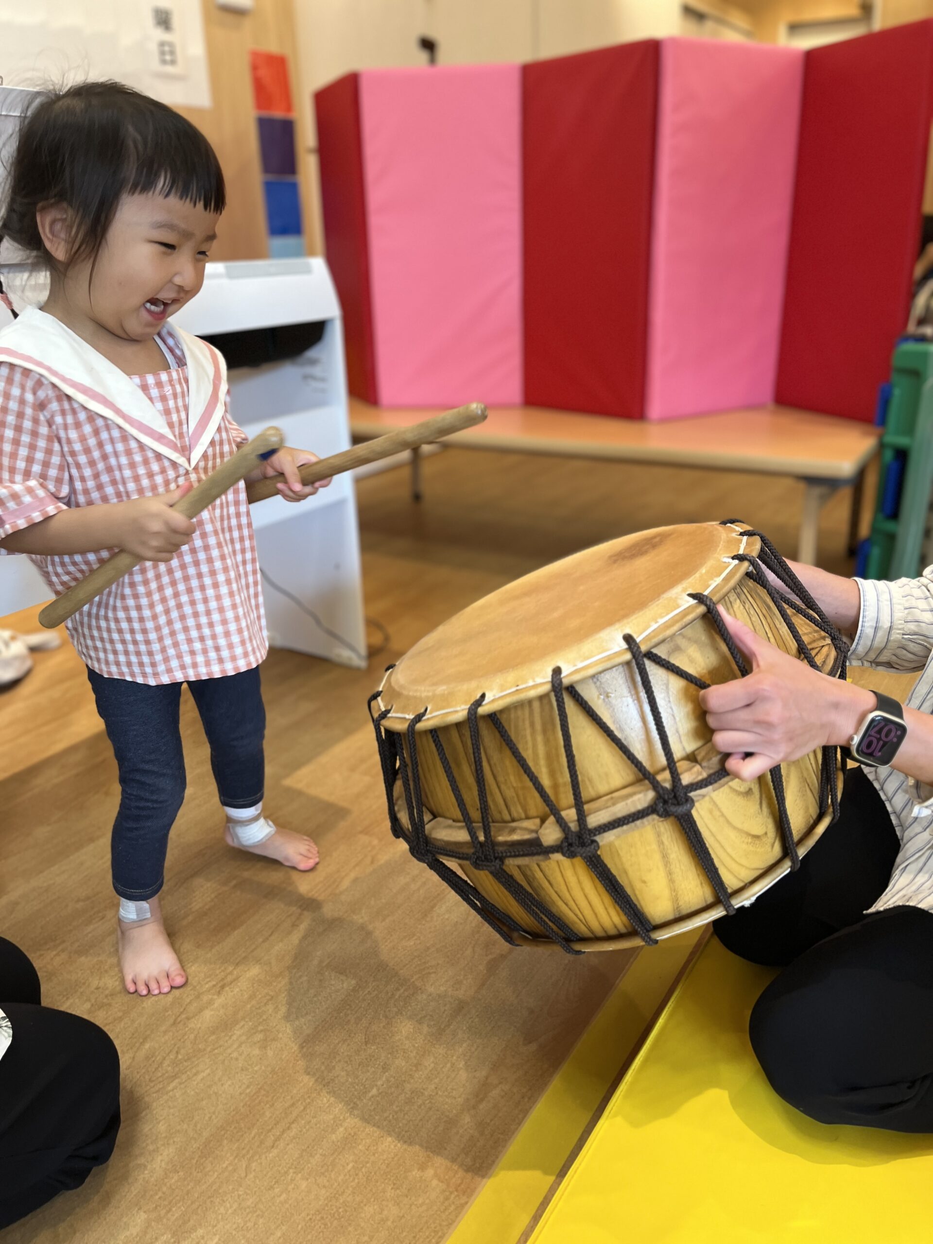 最後に、今日は大きな太鼓をみんなで叩きました!!!