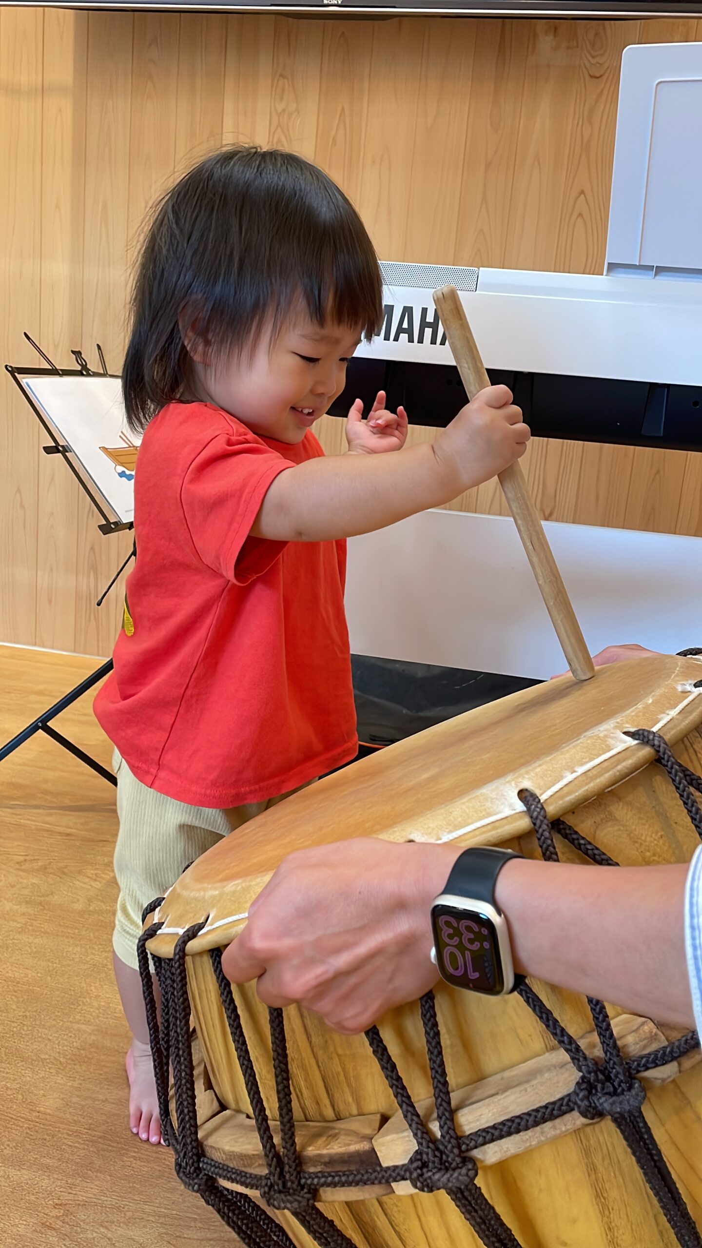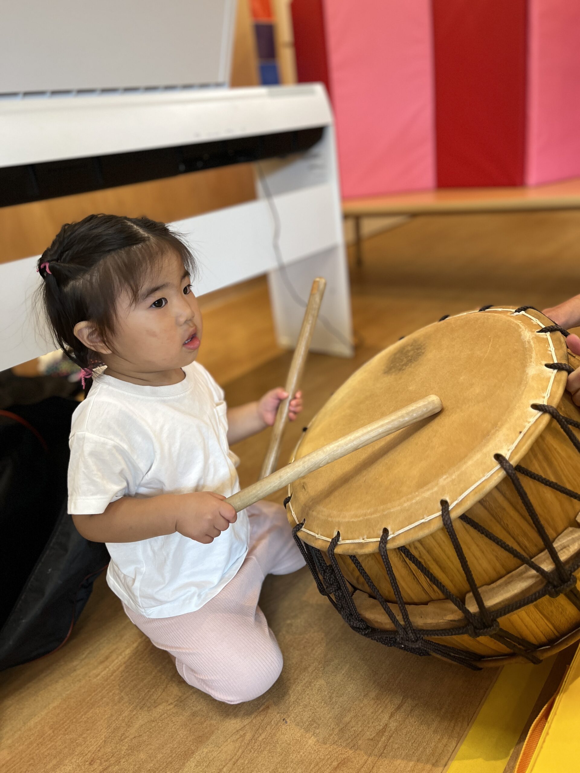 バチを持って一人ずつ叩いてみるのにもチャレンジ!!!