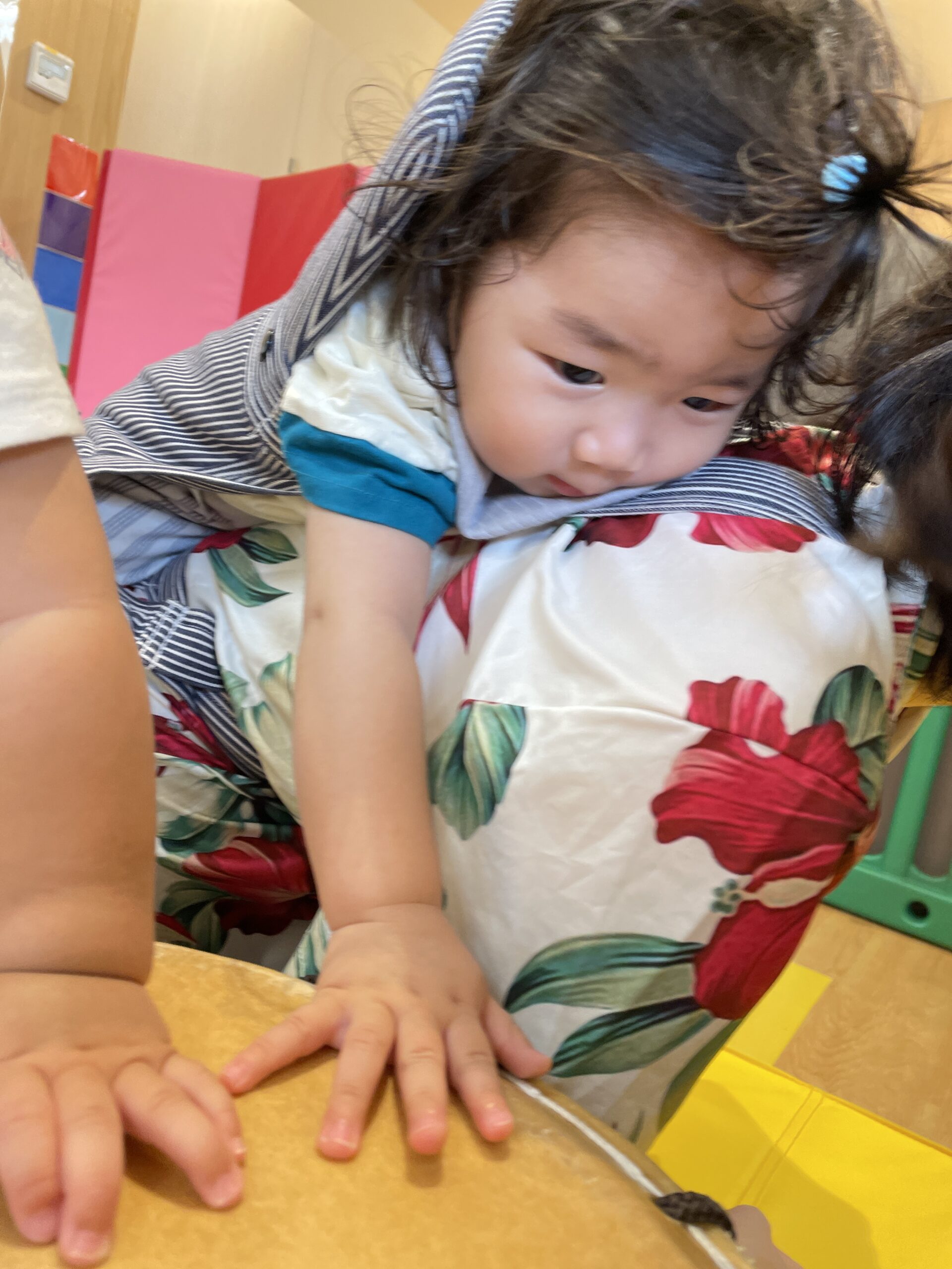 ゆらゆらしているスカーフをよく見て触れてリラックス。