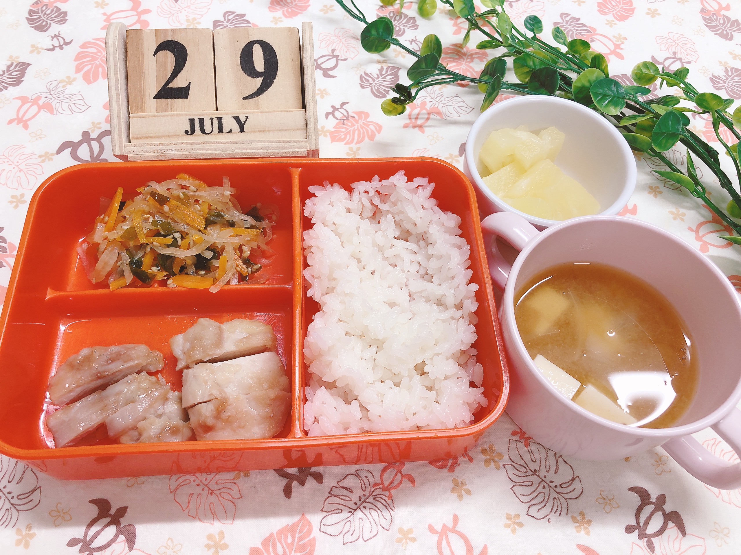 味噌汁とパインで心もほっと落ち着く