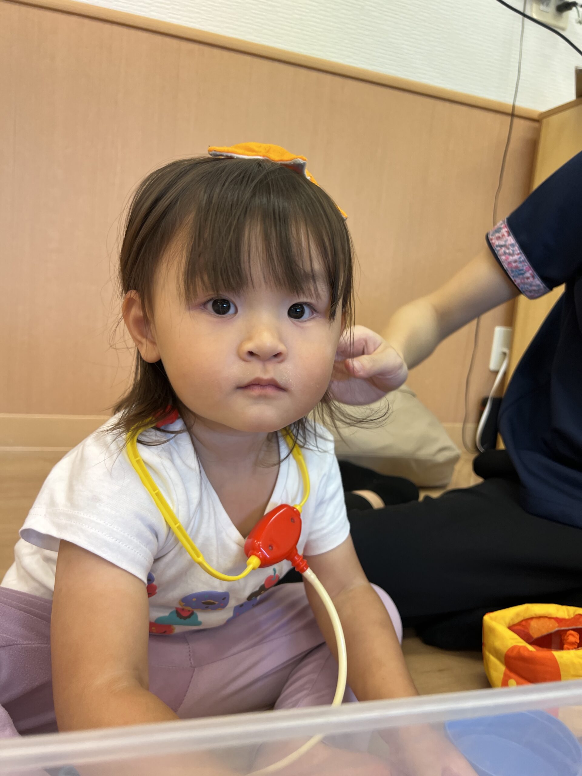 聴診器を首にかけて「お医者さんごっこ」を楽しむ子もいました!