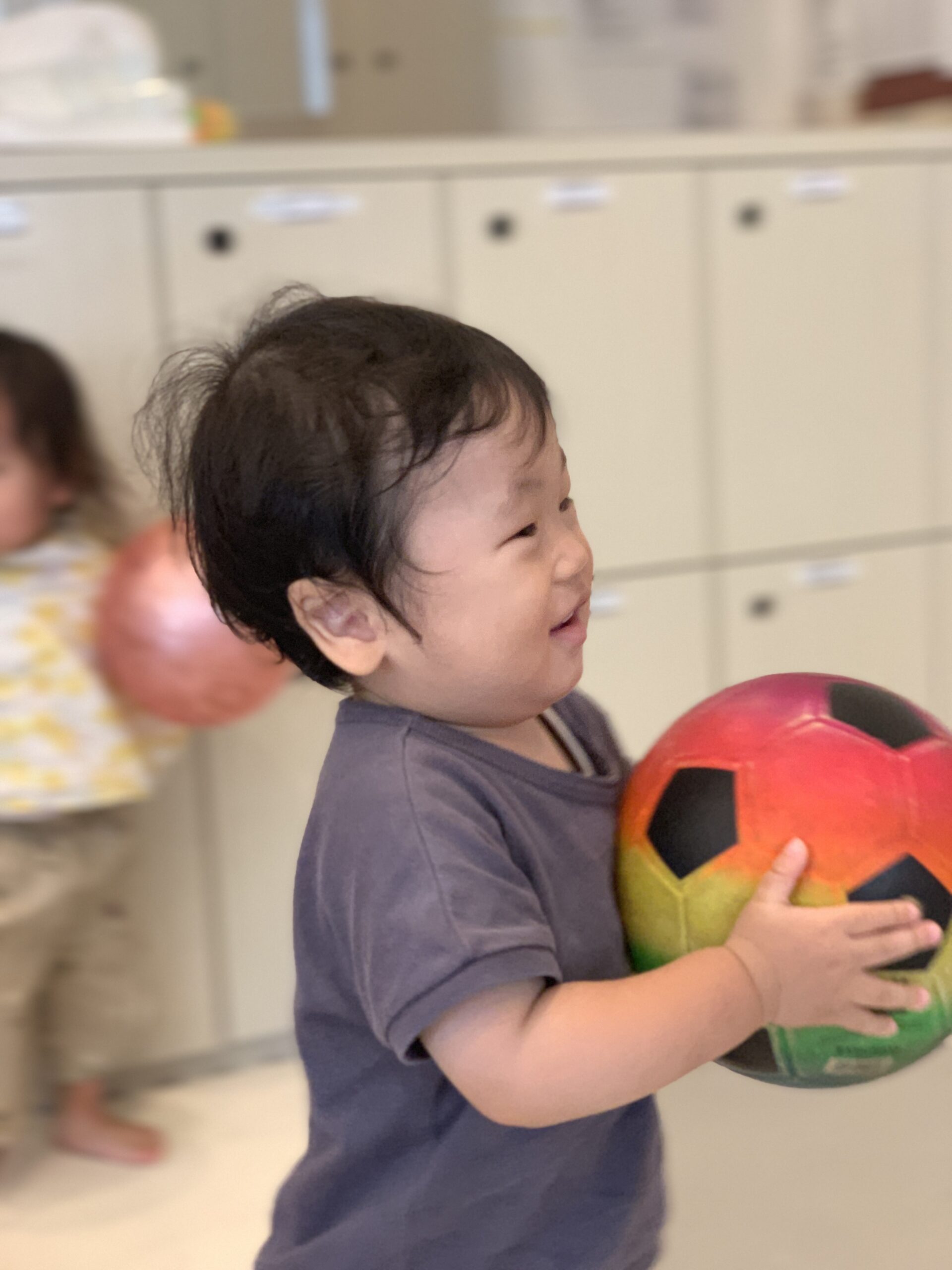 本日は小規模保育園ならではの手厚い保育で、小さなお友達が室内でさまざまな活動にチャレンジしました!安田式体育遊びを取り入れ、ボール遊びや滑り台に加え、みんなでアナログゲームも楽しみました。ボールを両手でしっかり持ち歩いたり、滑り台を順番に滑ったりと、安心できる環境でたくさん体を動かしています。保活中のご家庭にもぴったりな、一人ひとりが輝ける空間です♪