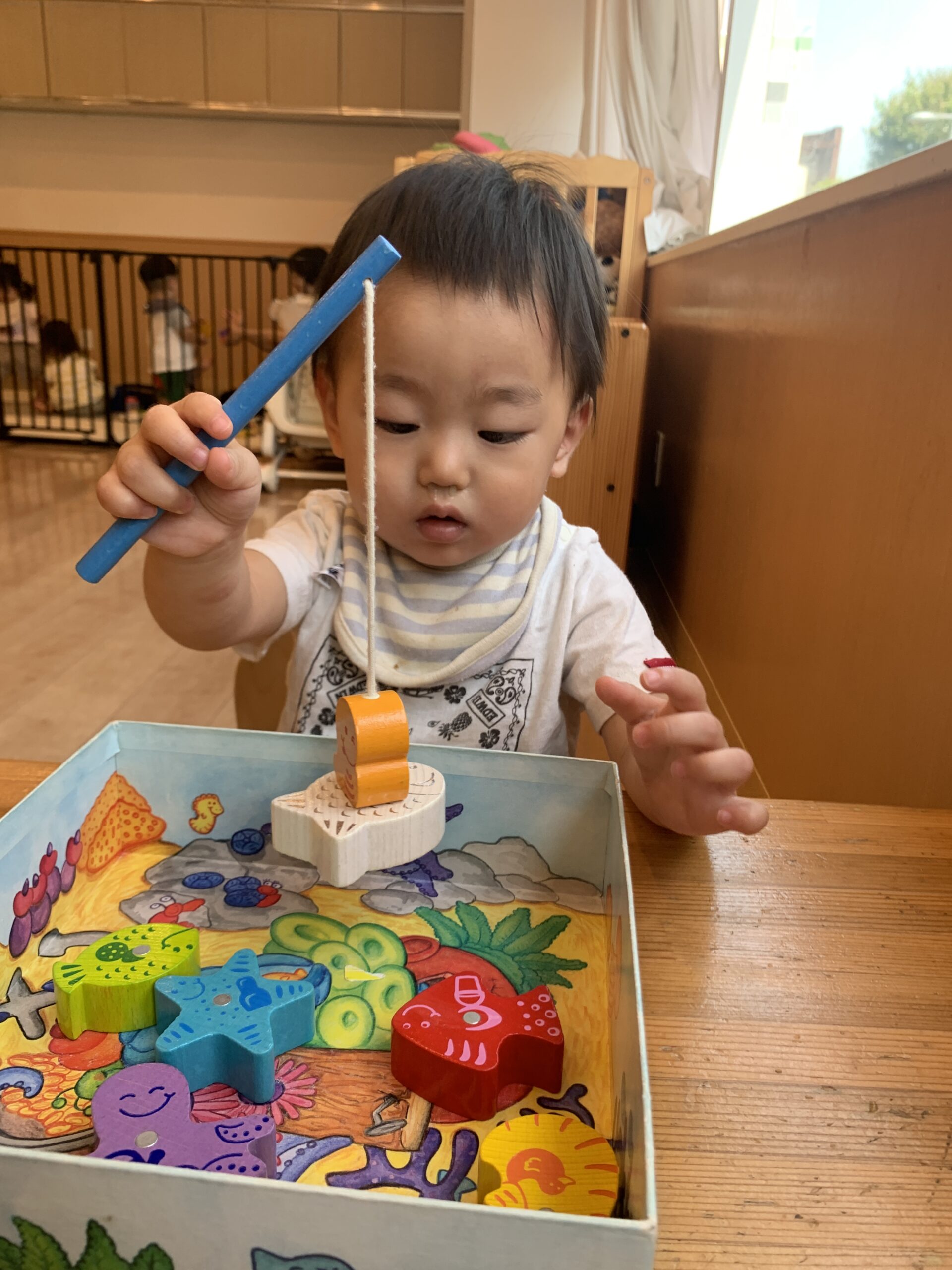 アナログゲームの魚釣りでは、サイコロで出た色のお魚を探しながら「どれかな?」と先生と一緒に挑戦!今日もたくさんの発見と、みんなの笑顔が溢れる一日でした!