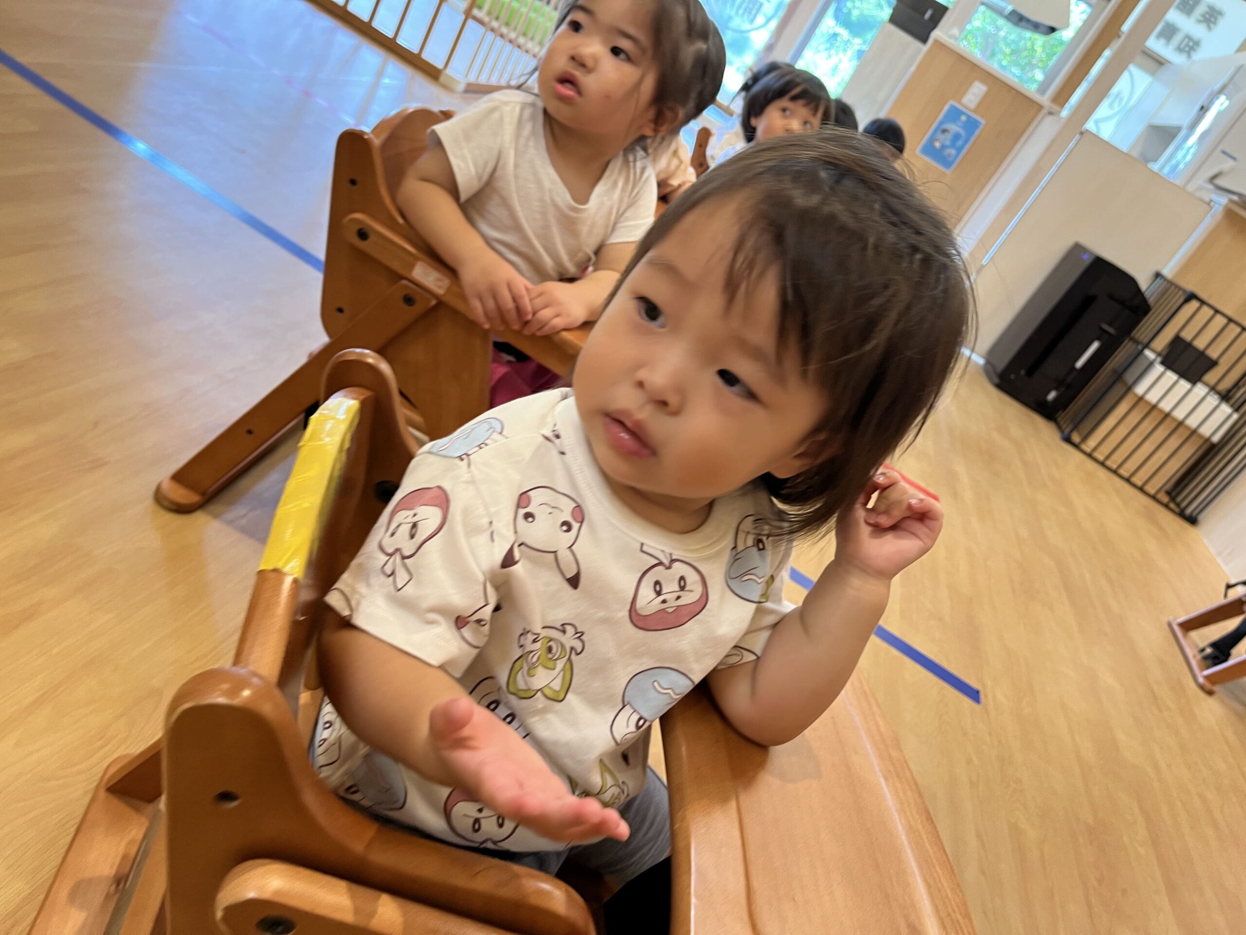今日のお誕生日会では、主役のお友だちが本当に特別な気持ちになれるよう、いくつかの工夫をしました。まず、誕生日の子どもたちが入場する際には、特別な音楽で雰囲気を盛り上げました。また、インタビューの質問は自信を持って答えられるようにサポート。さらに、一人ひとりの個性に合わせた質問も用意し、その子らしさが引き出せるように心がけました。その結果、主役の子どもたちからは満面の笑顔が溢れ、周りの子どもたちも自然と拍手や笑顔で応えていました。保育園での日々の育児の中で、こうした「認められる」「祝福される」経験は子どもたちの自己肯定感を高める大切な機会となっています。
