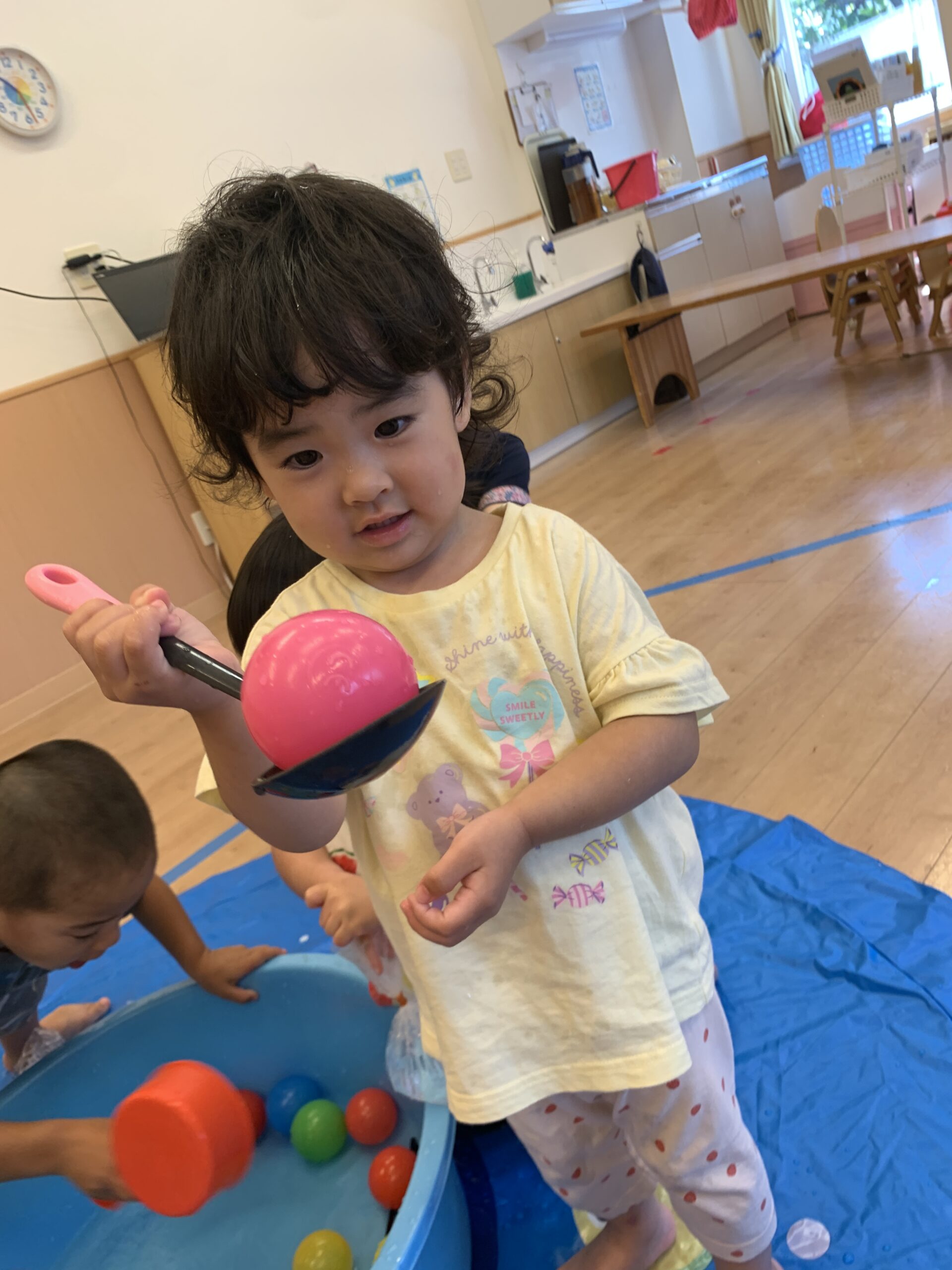 おたまでボールをすくうヨーヨー遊びにも夢中でした!