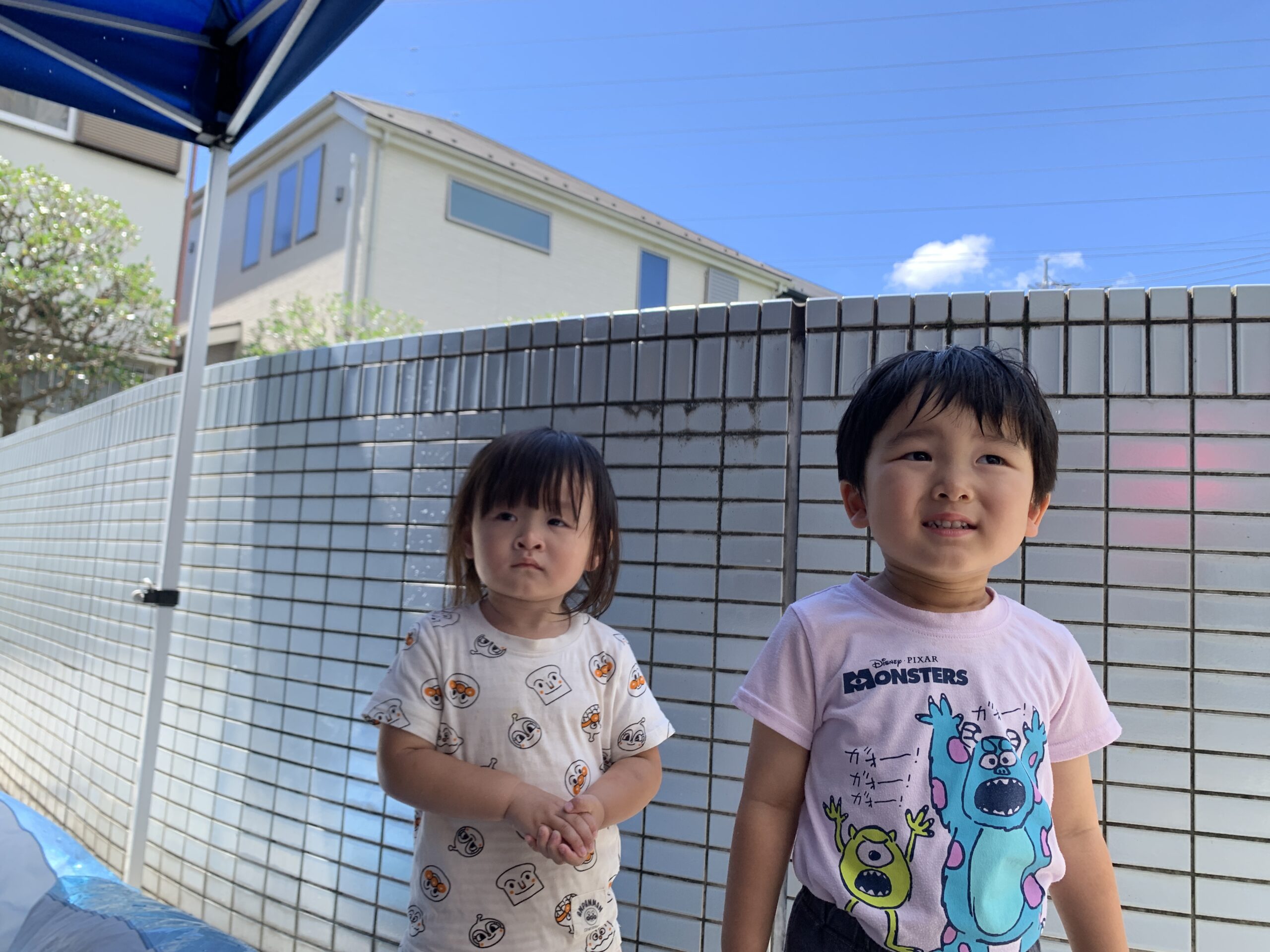 虹組の小さい子どもたちは、お兄さんお姉さんがバケツで水をすくってバシャバシャと遊ぶ姿をじっと観察!!