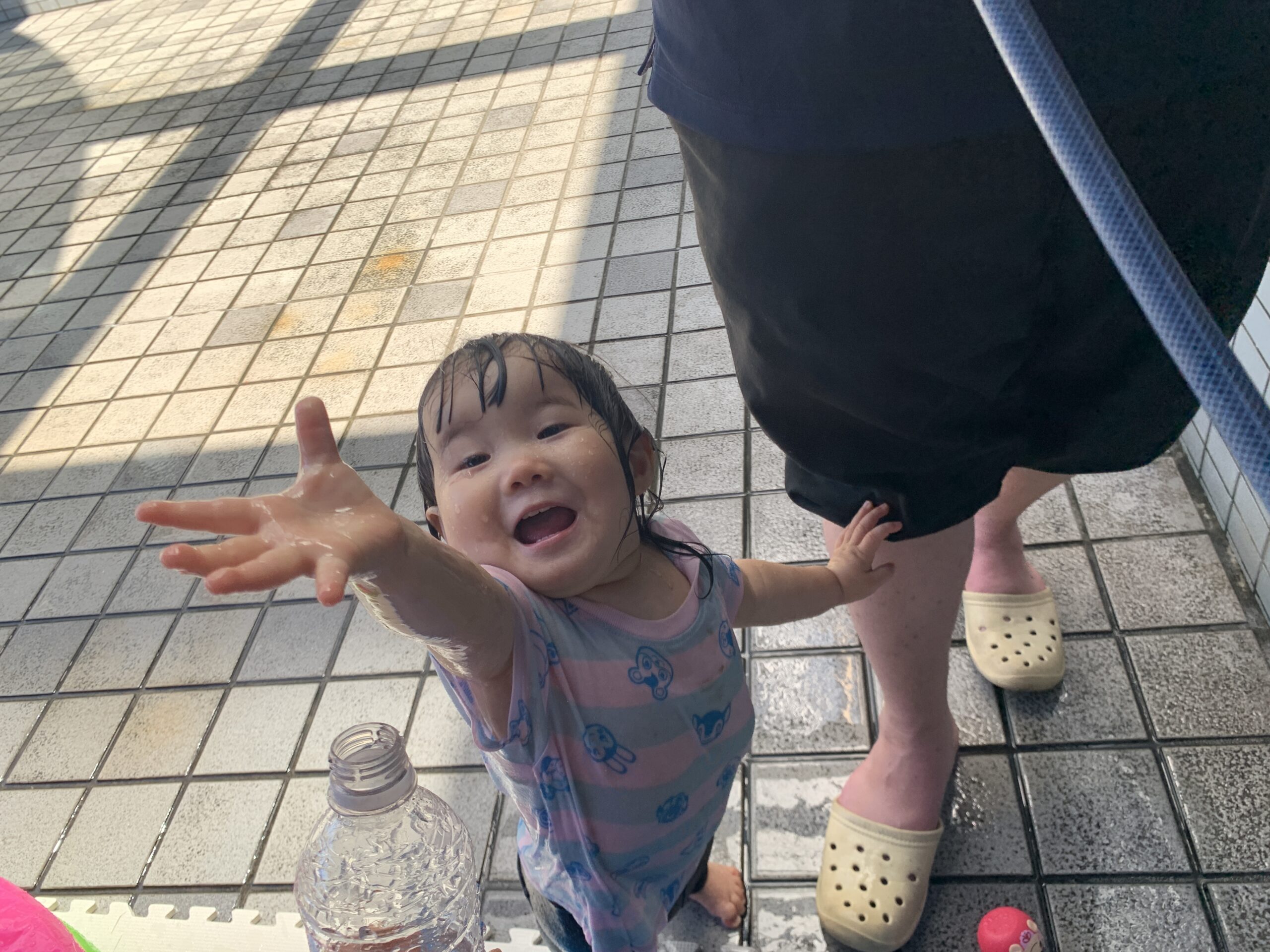 本日は青空組・虹組合同で水遊びを楽しみ、水の感触や面白さを全身で味いました!