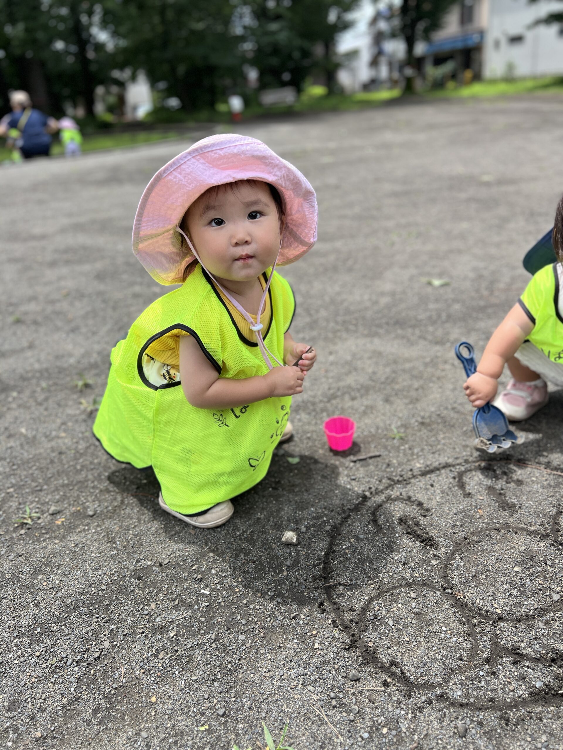 子どもたちは太陽の下、公園で元気に砂遊びや追いかけっこを楽しみました。