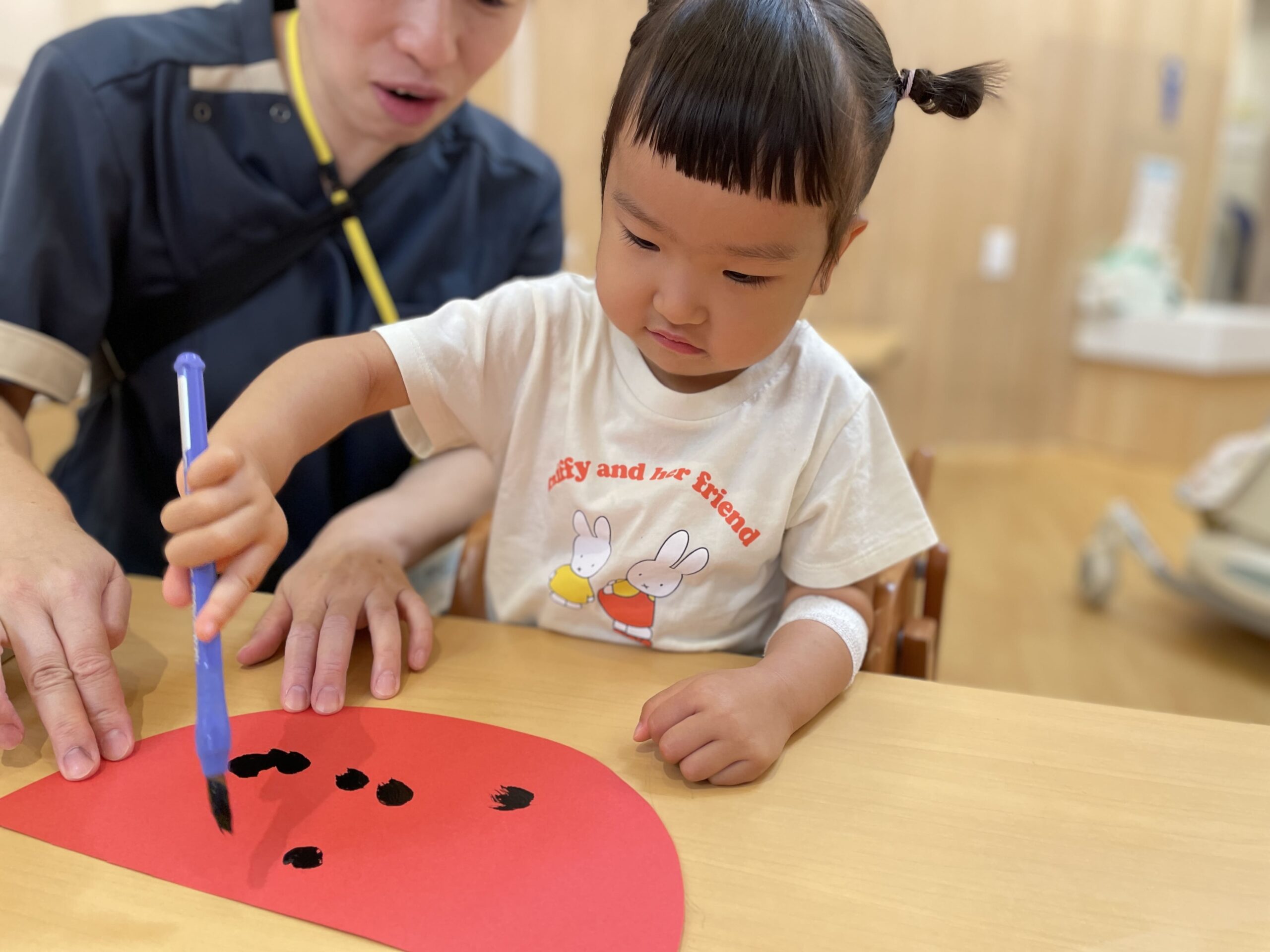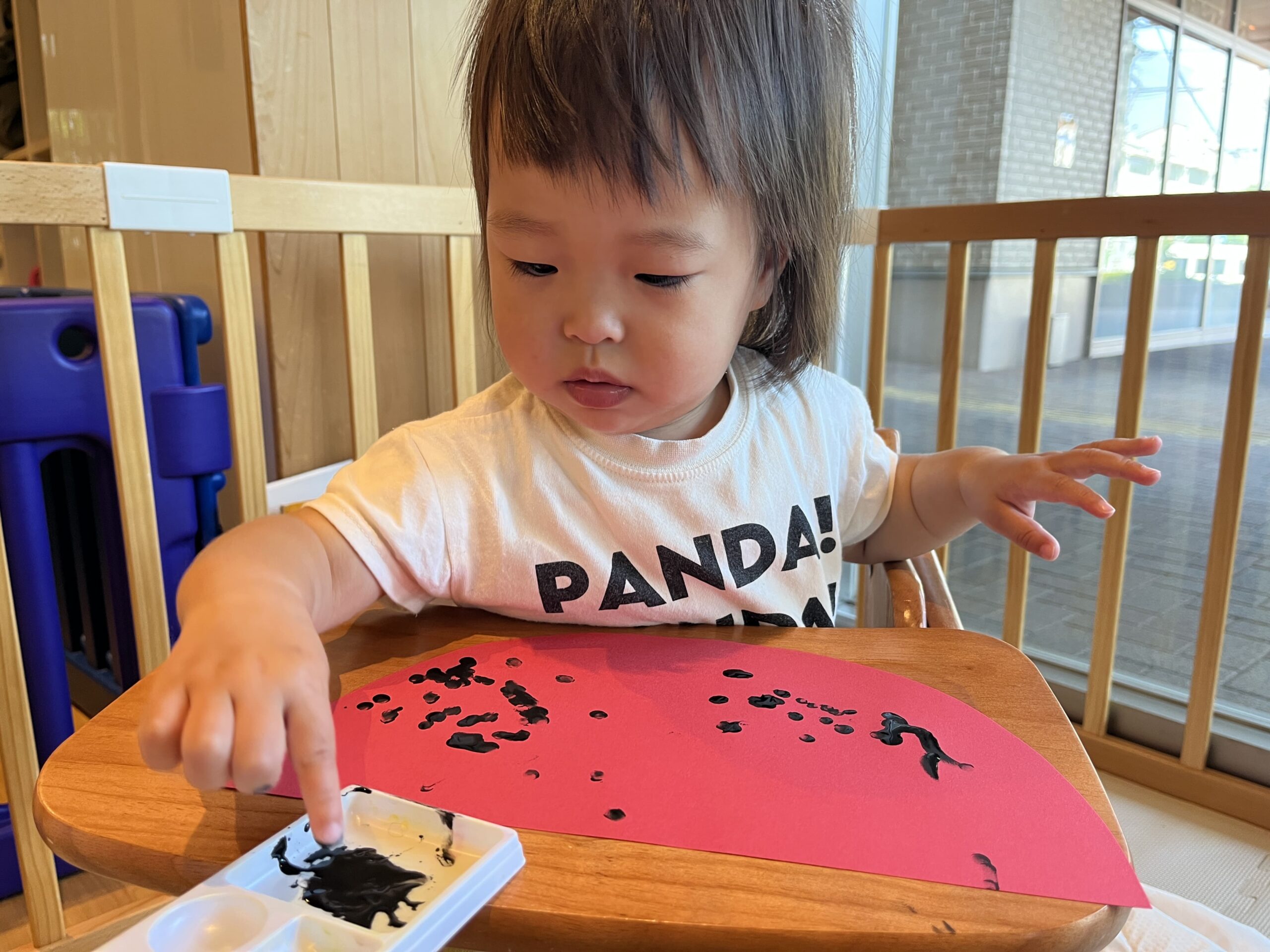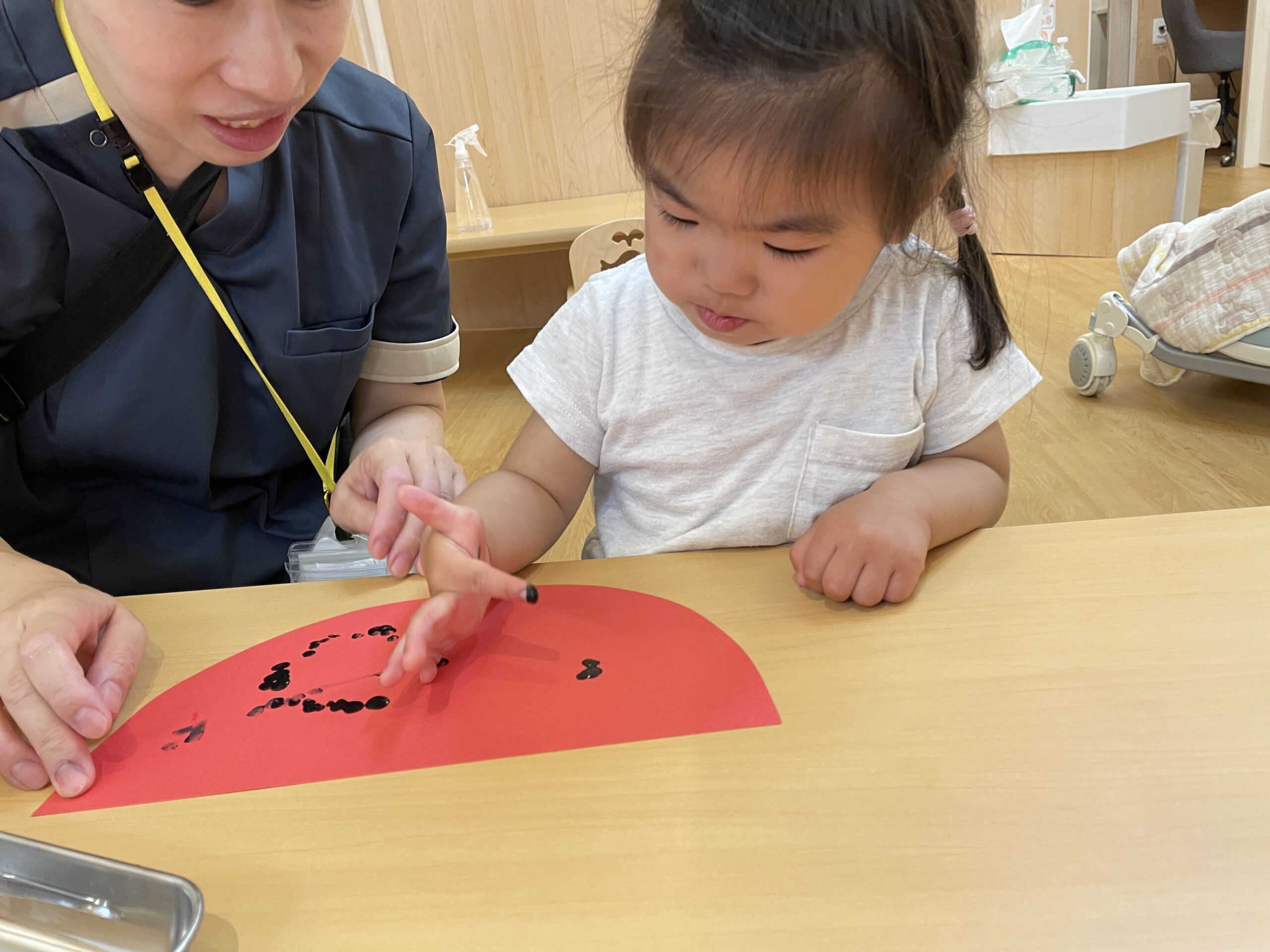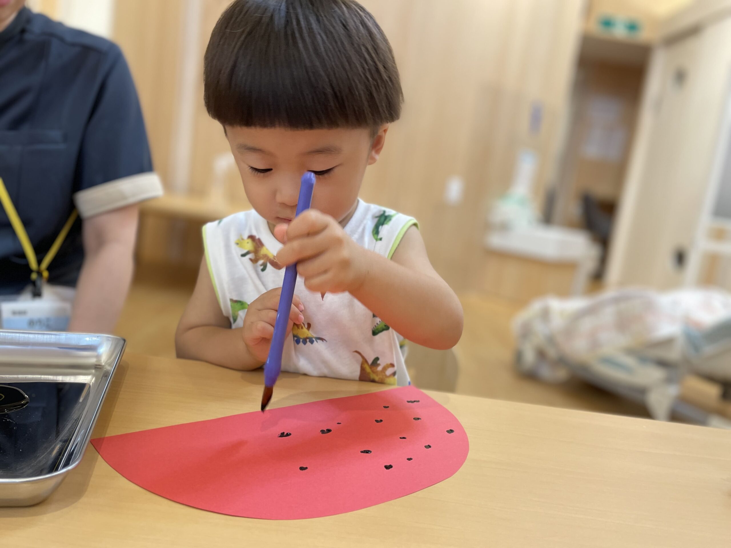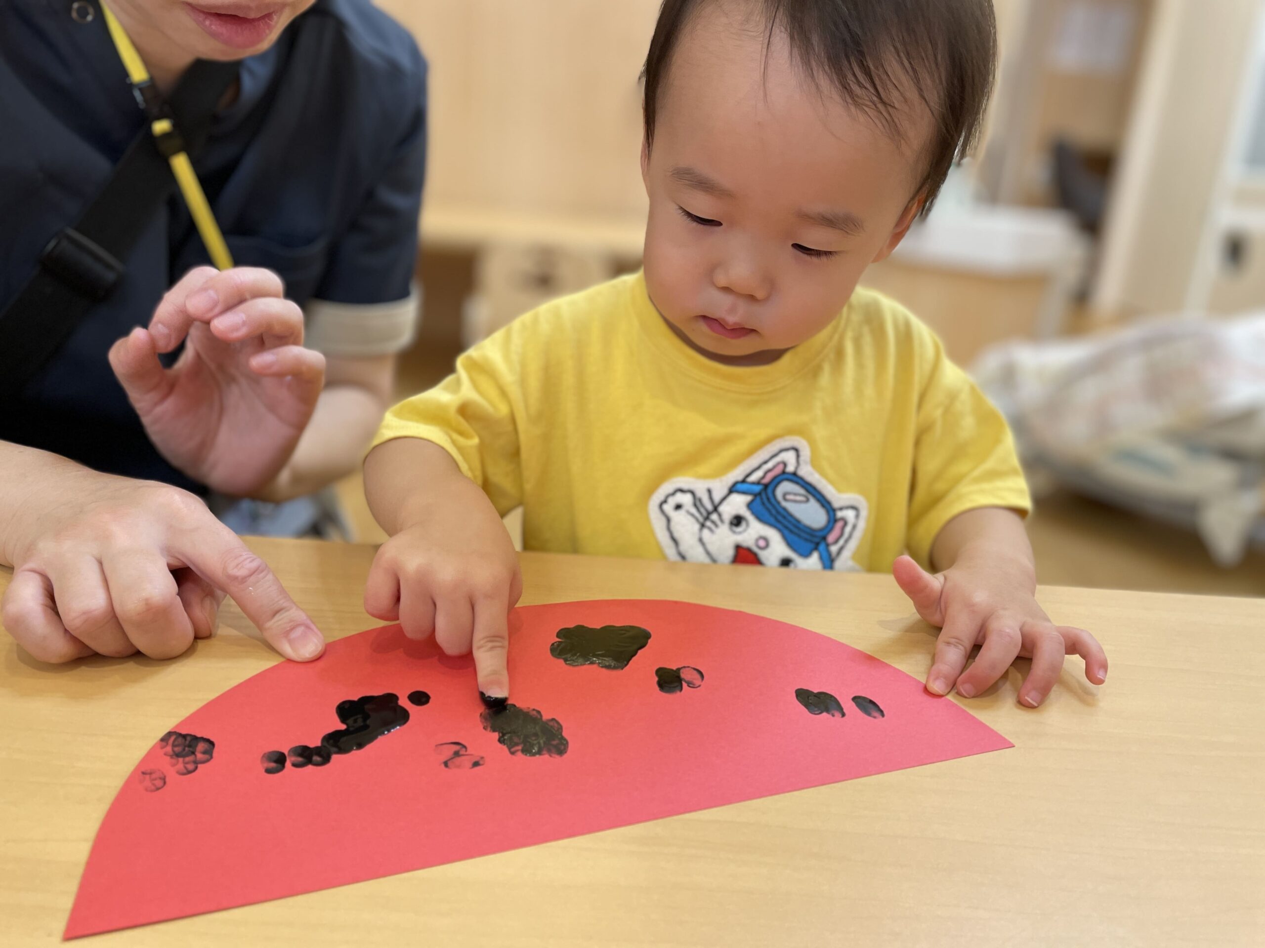 0歳児はすいかの種をシールで作りました!