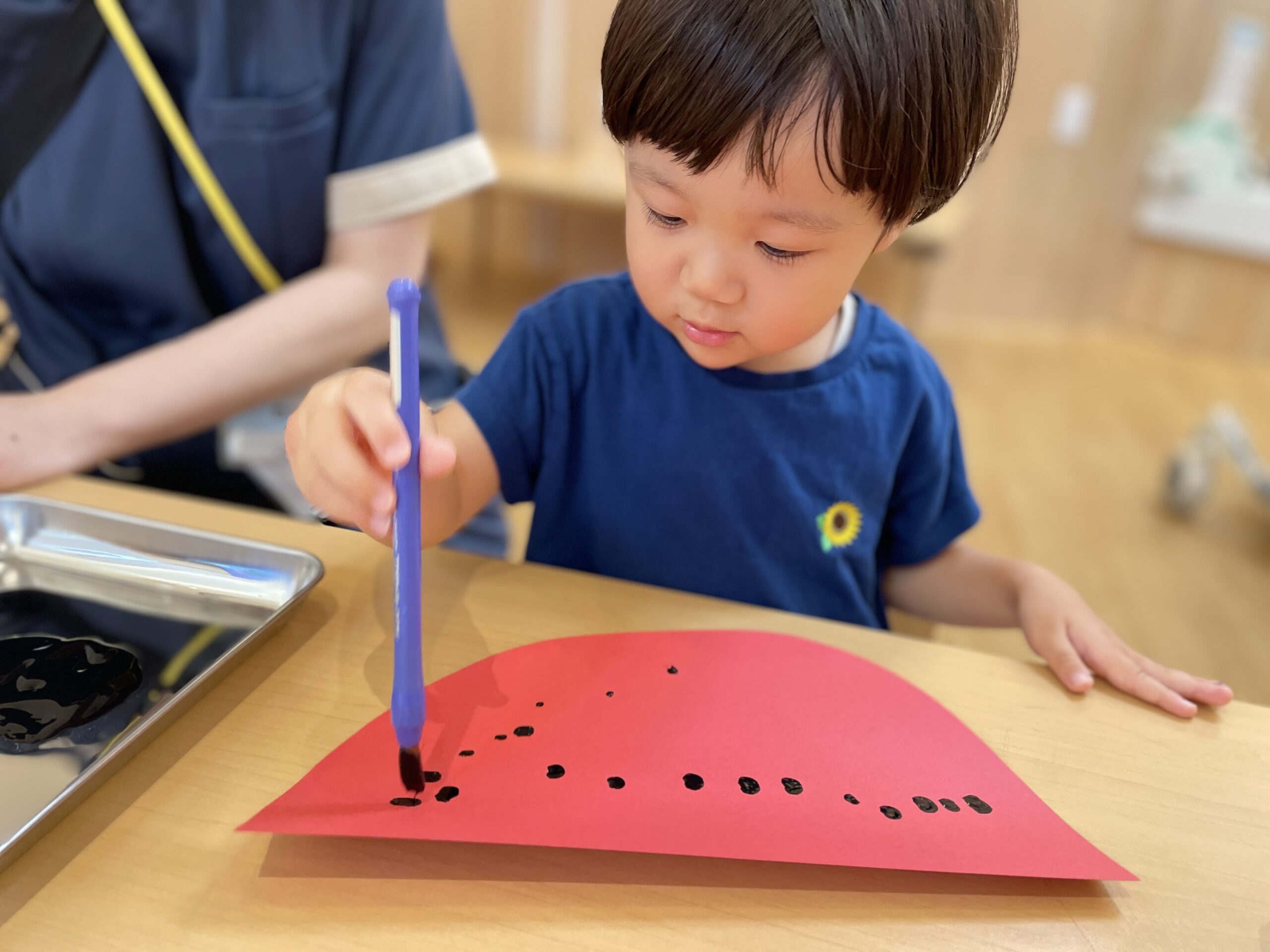2歳児は筆を使って種を描きました!