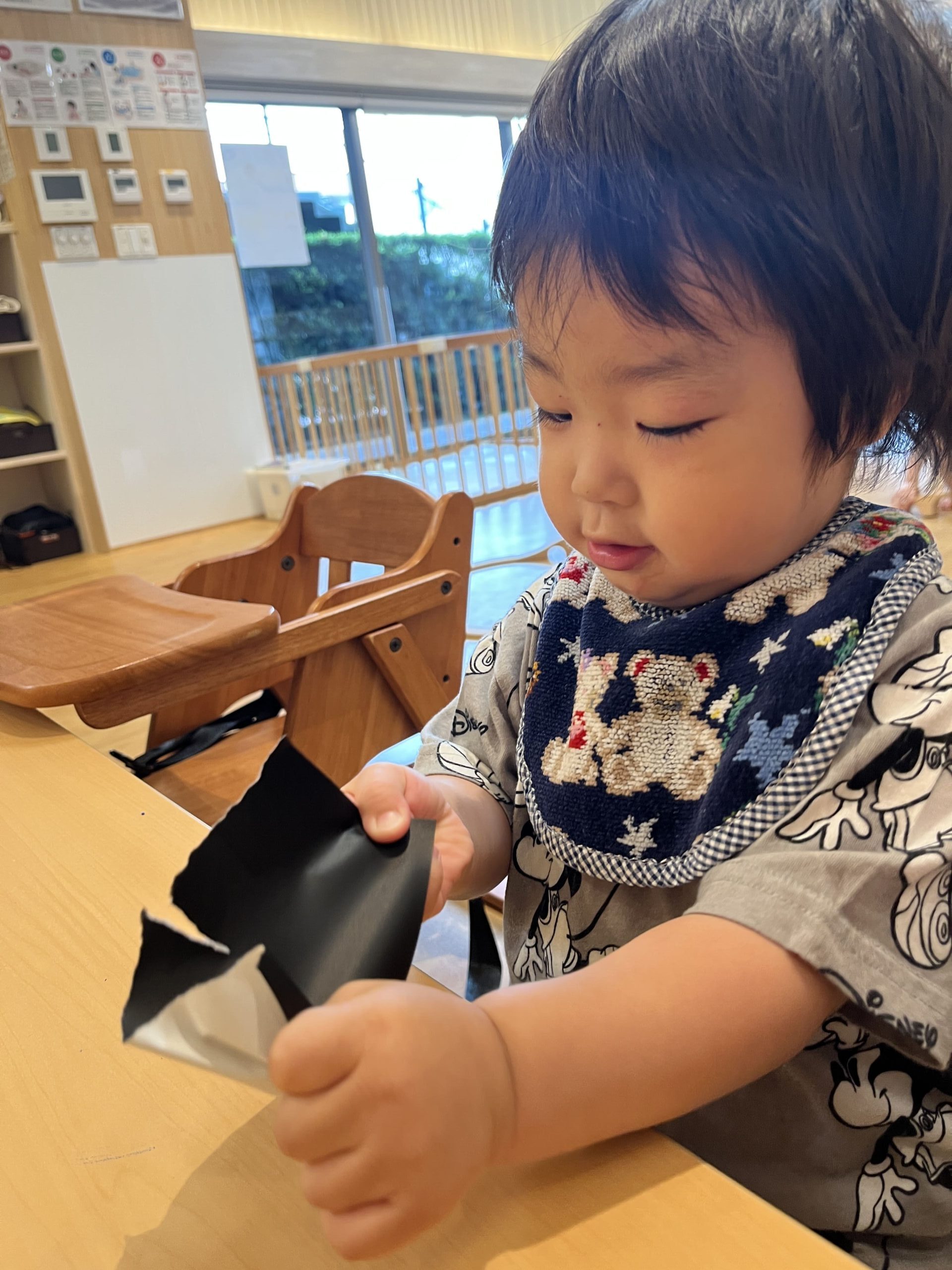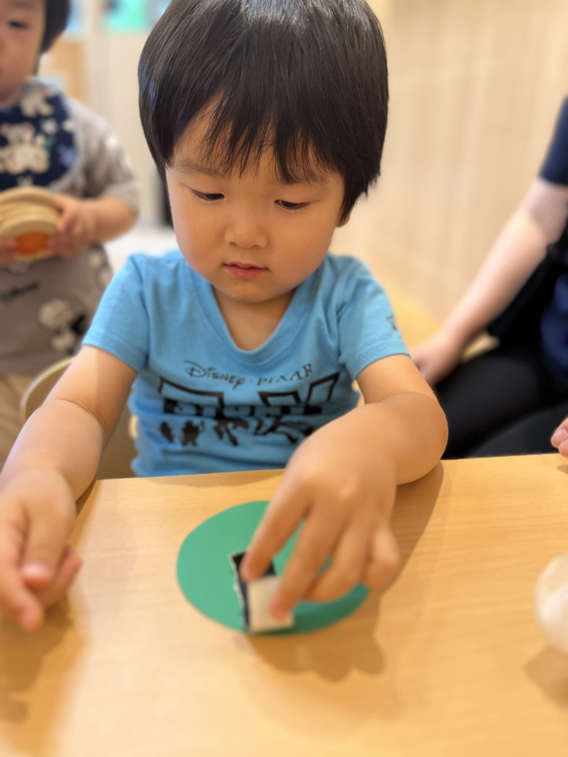 0歳児:シール貼りで指先を器用に使い、集中力・想像力を養う