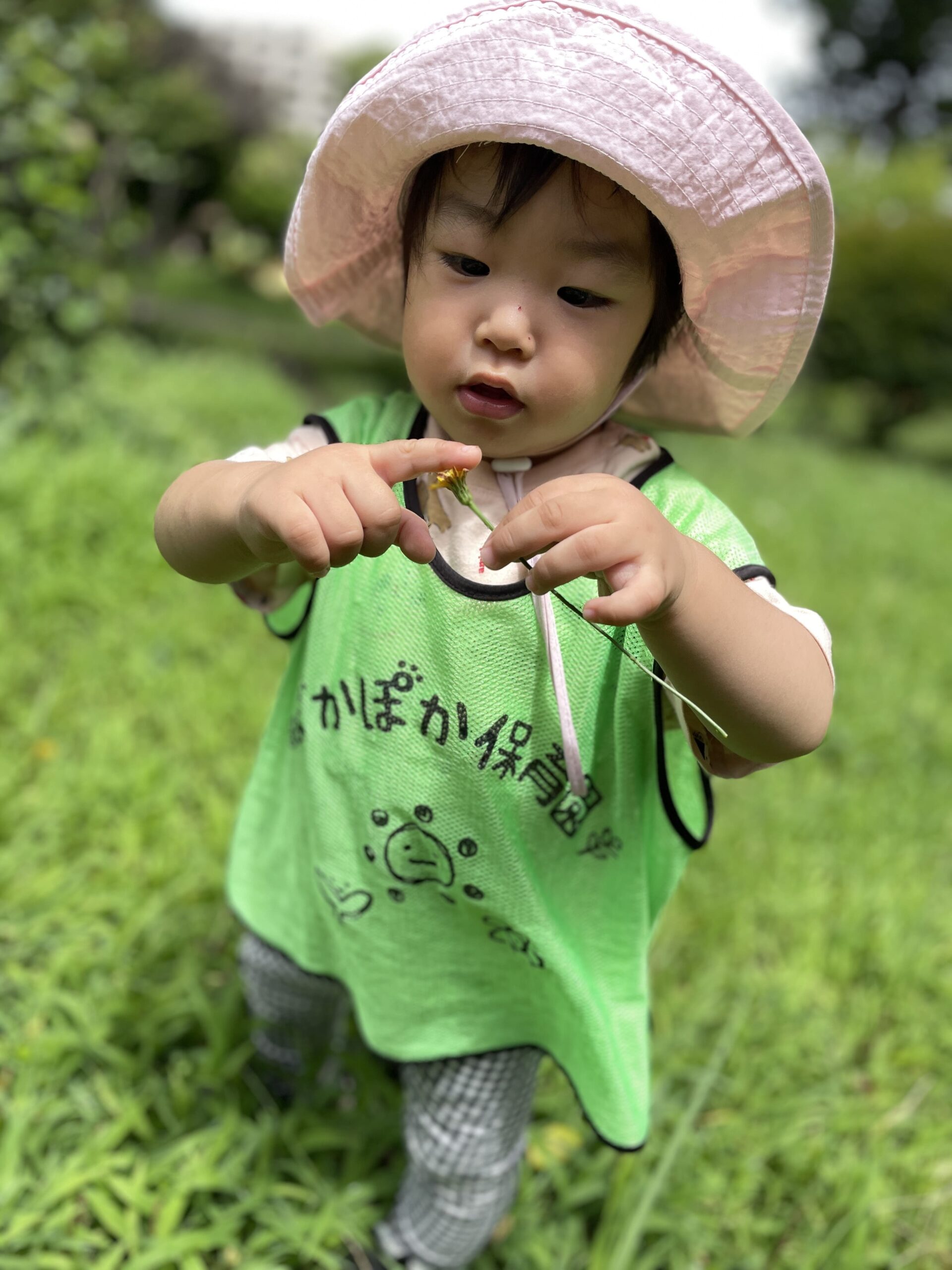 公園の草むらでは、子どもたちそれぞれが自分なりの楽しみ方を見つけていました。自分たちで花を見つけて触って楽しんでいました。
