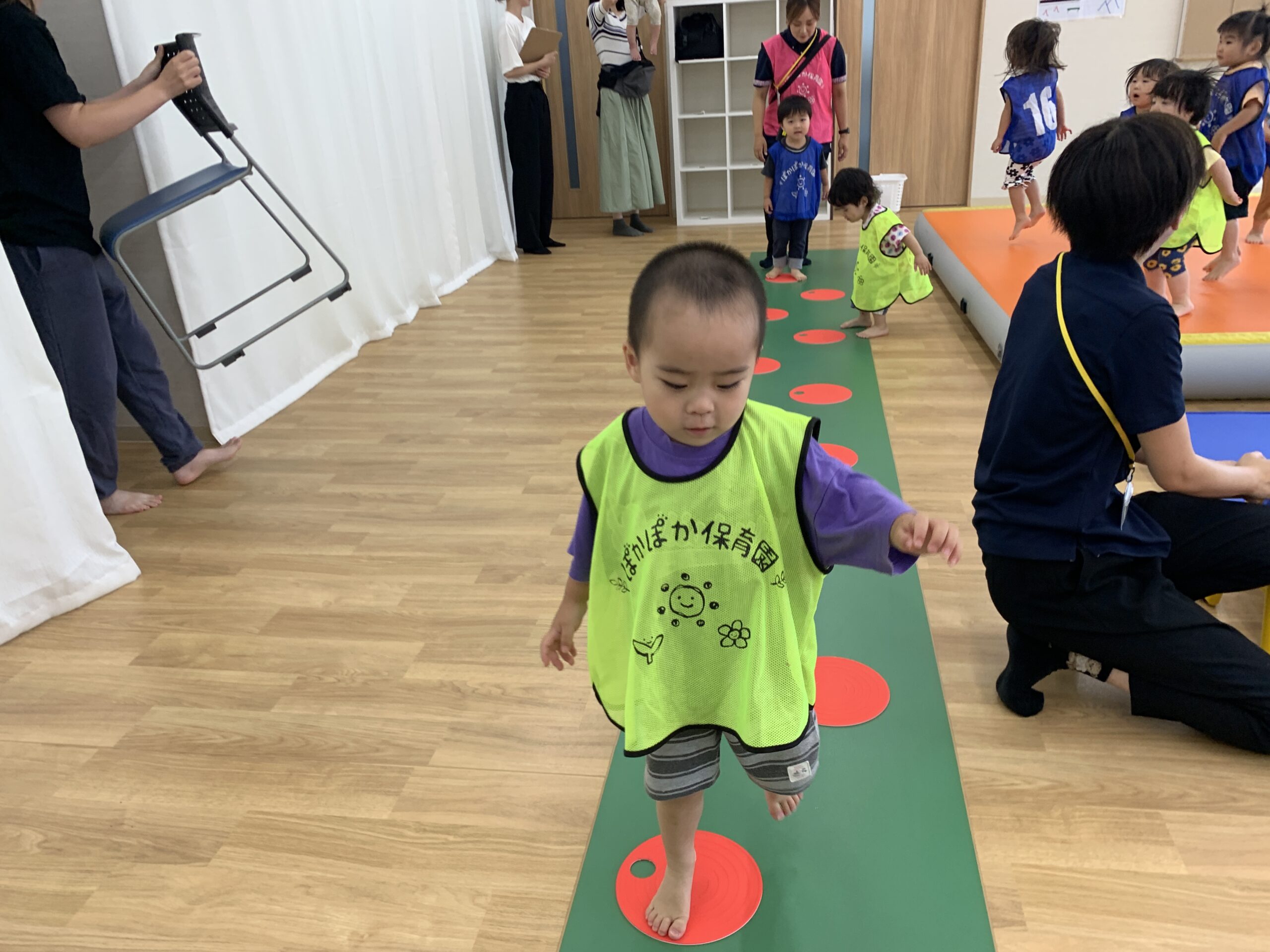 順番を守ったり「がんばって!」と応援しあう姿が見られ、お互いを思いやる気持ちや協調性も育っています。