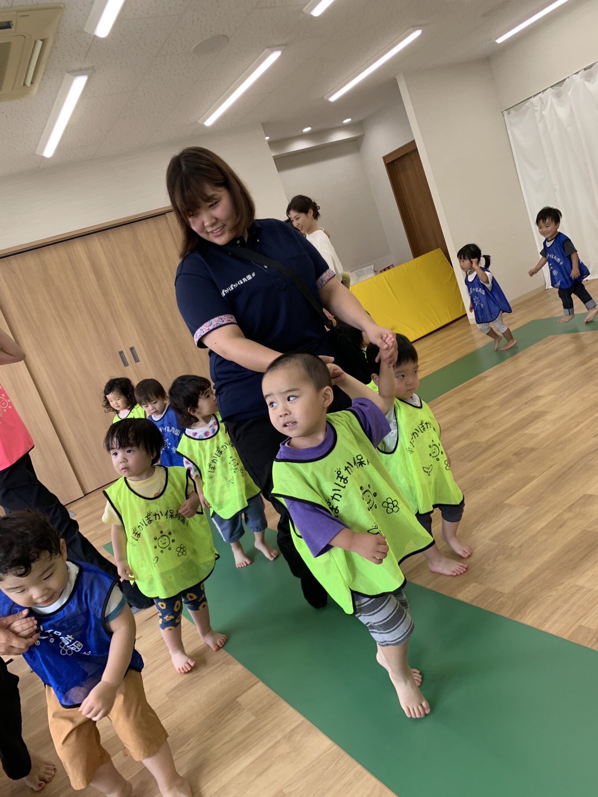 ダンスの最中も笑顔が絶えず、他園のお友だちとも自然に打ち解けて手をつなぐ様子に成長を感じます。