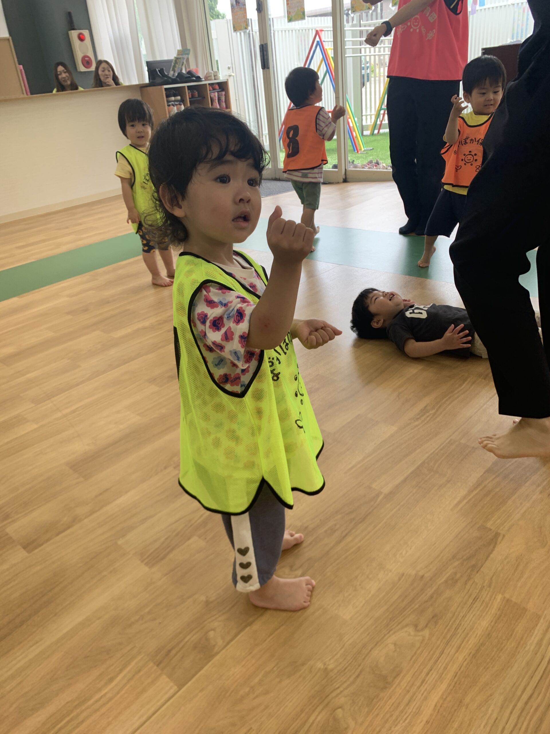 運動遊びでは「もっとやりたい!」とチャレンジ精神も見られました。