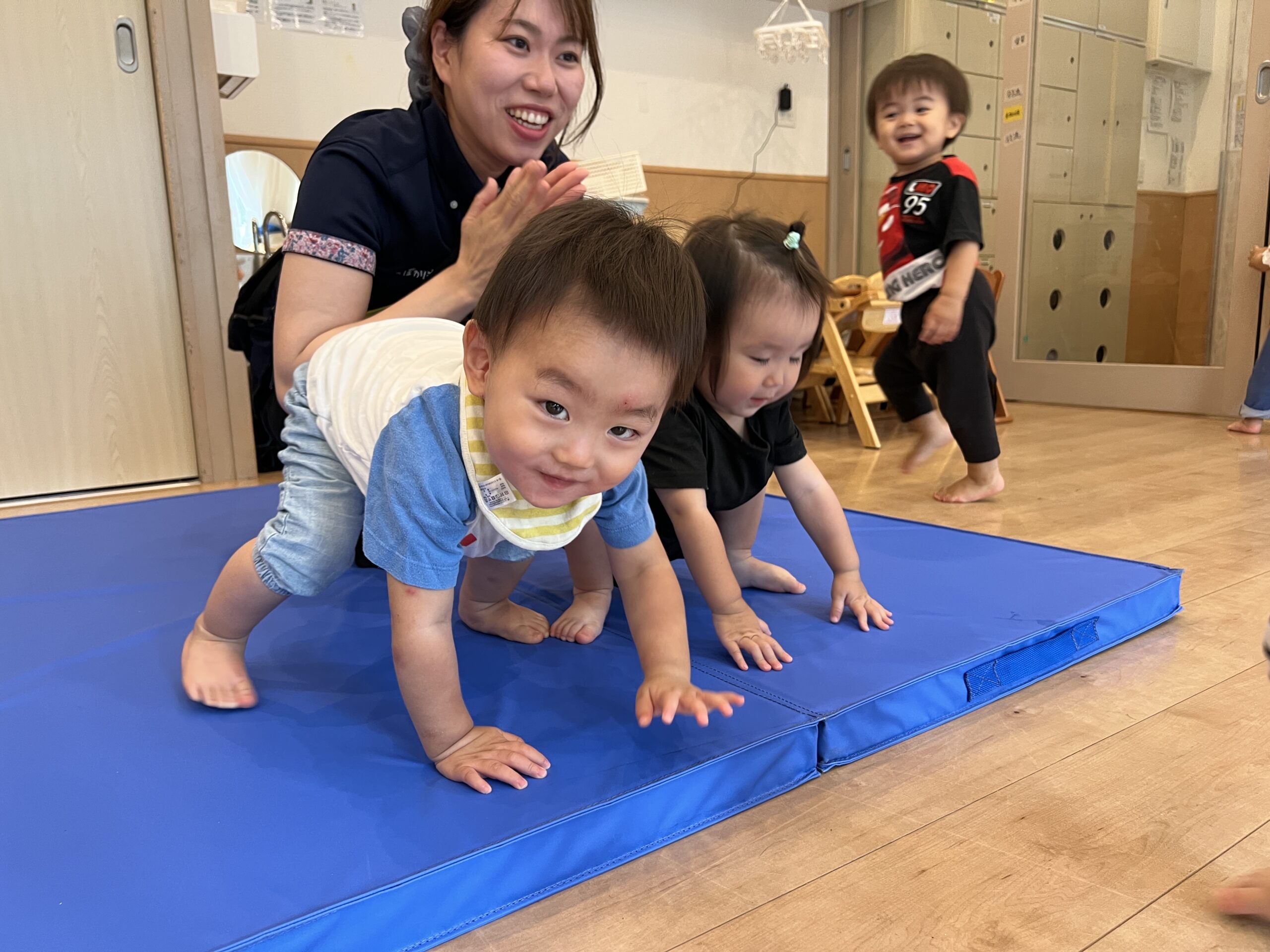 運動遊びでは「もっとやりたい!」とチャレンジ精神も見られました。