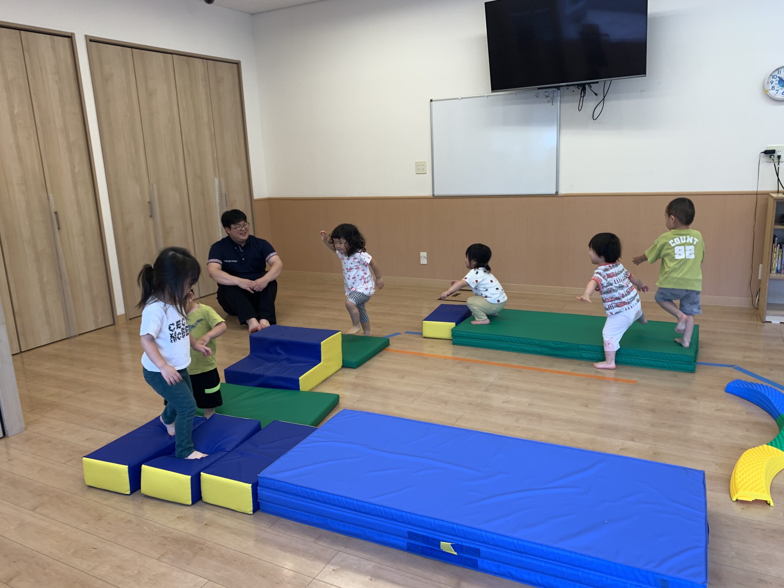 運動遊びの時間には、みんなで元気いっぱい体を動かしました。