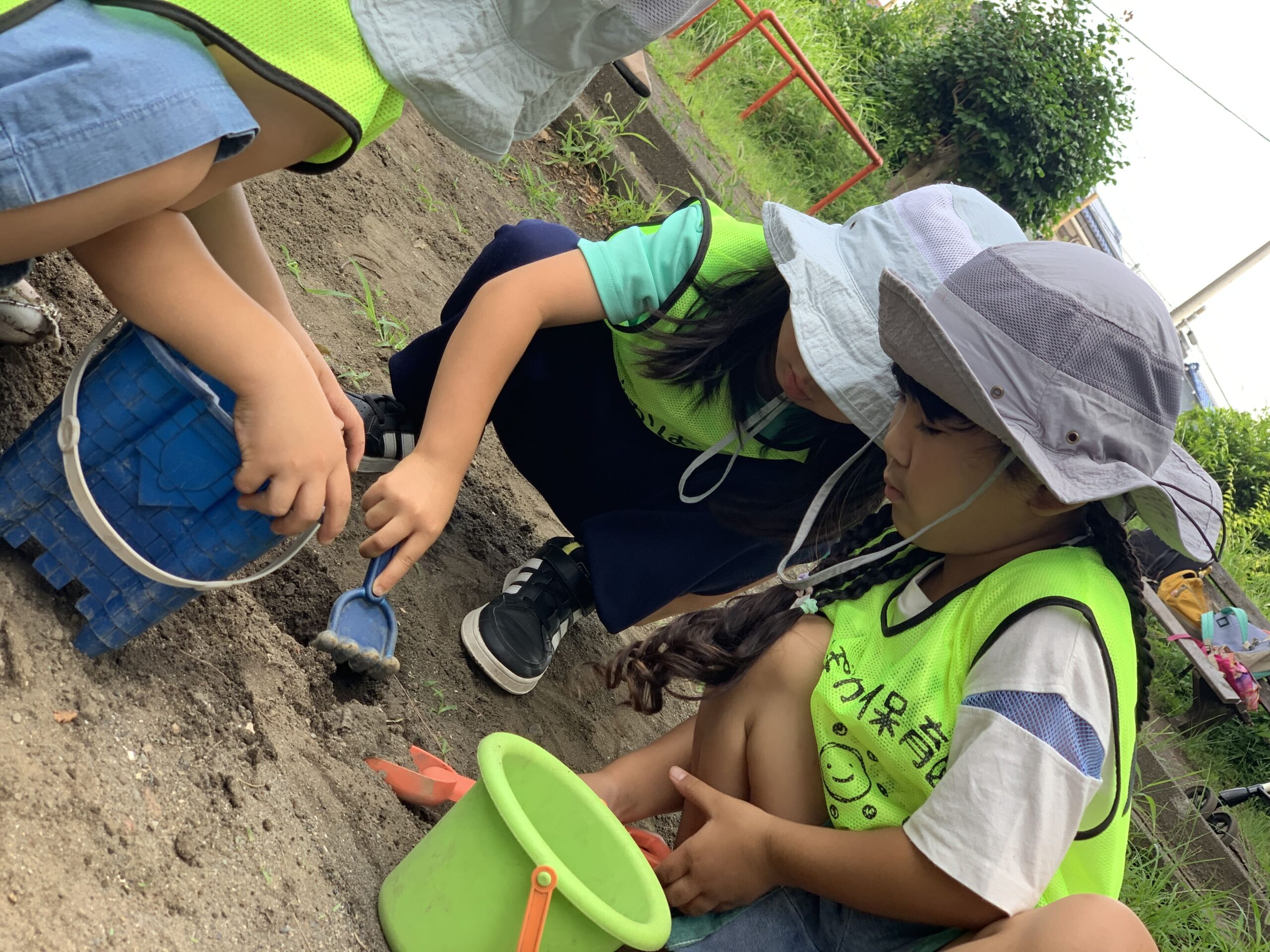 今日の公園は、こども園のお友達とも一緒だったので、砂場は大盛り上がり!年齢が違っても、みんな自然と輪の中に入っていきます。