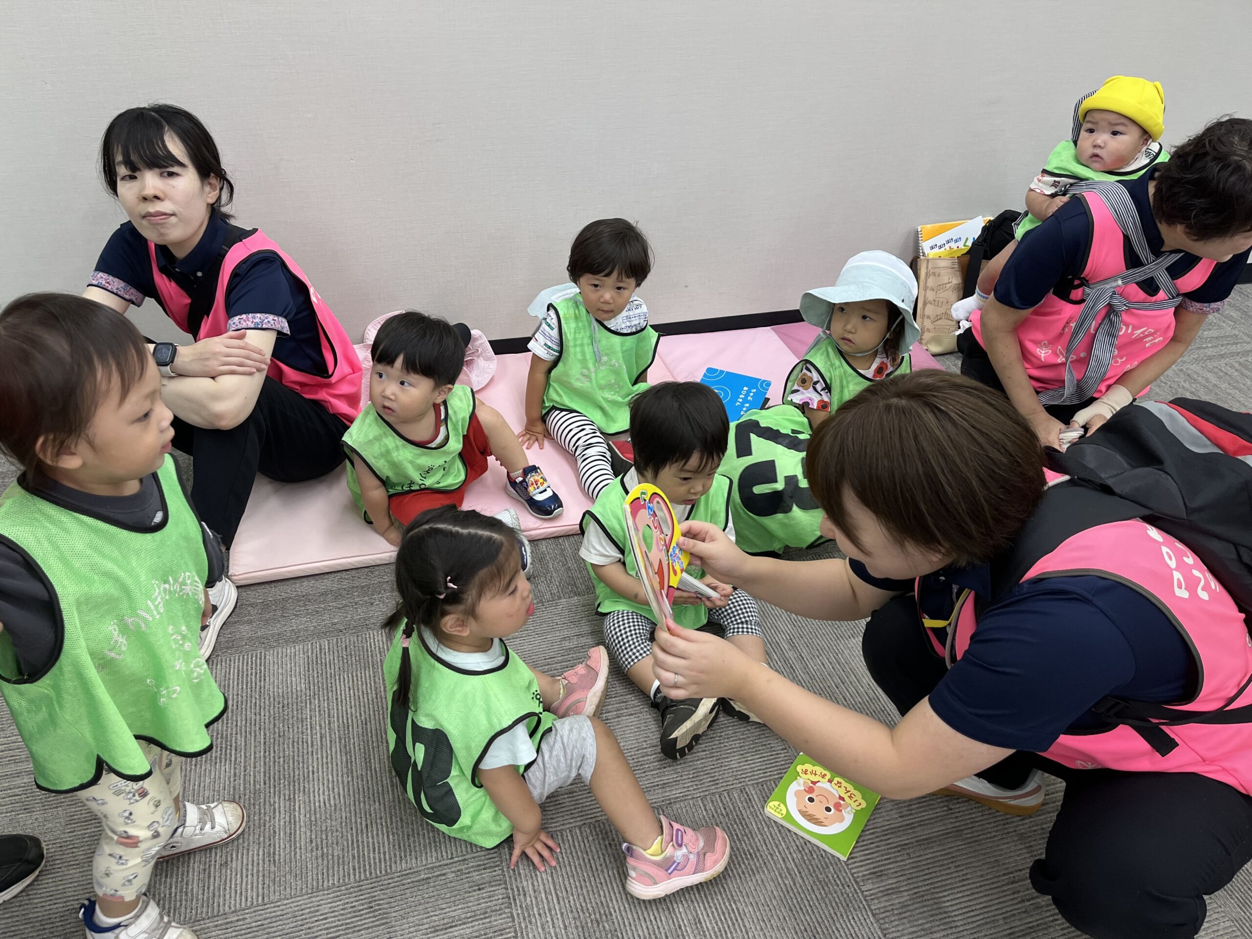 待っている間、他園のお友だちと「こんにちは」と小さな声でごあいさつしたり、好きな絵本を先生と一緒に読みながら安心して過ごせました。