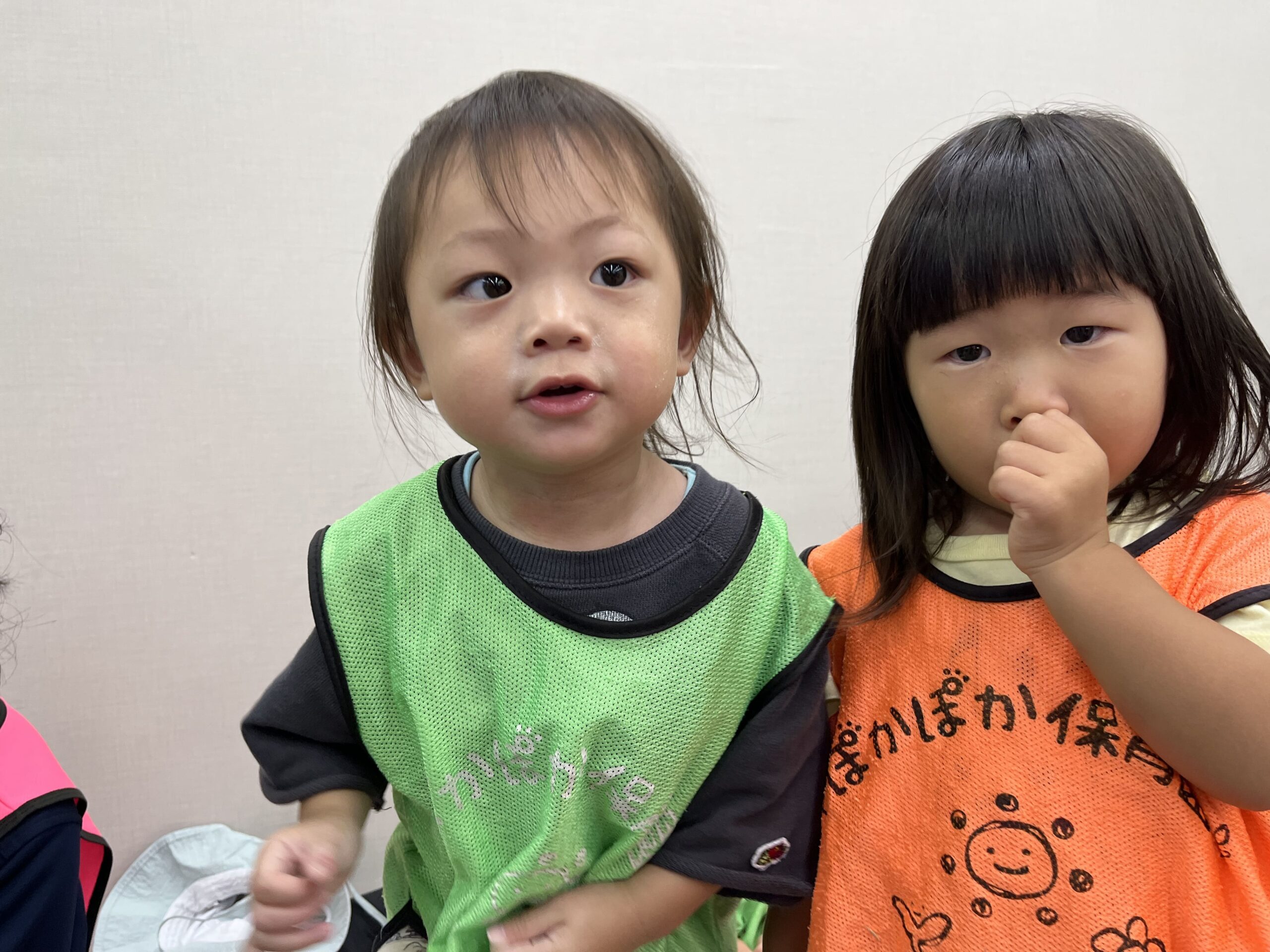 いつもと違う場所や、他園のお友だち、見慣れない先生に囲まれ、ちょっぴり緊張の面持ちの子もいました。