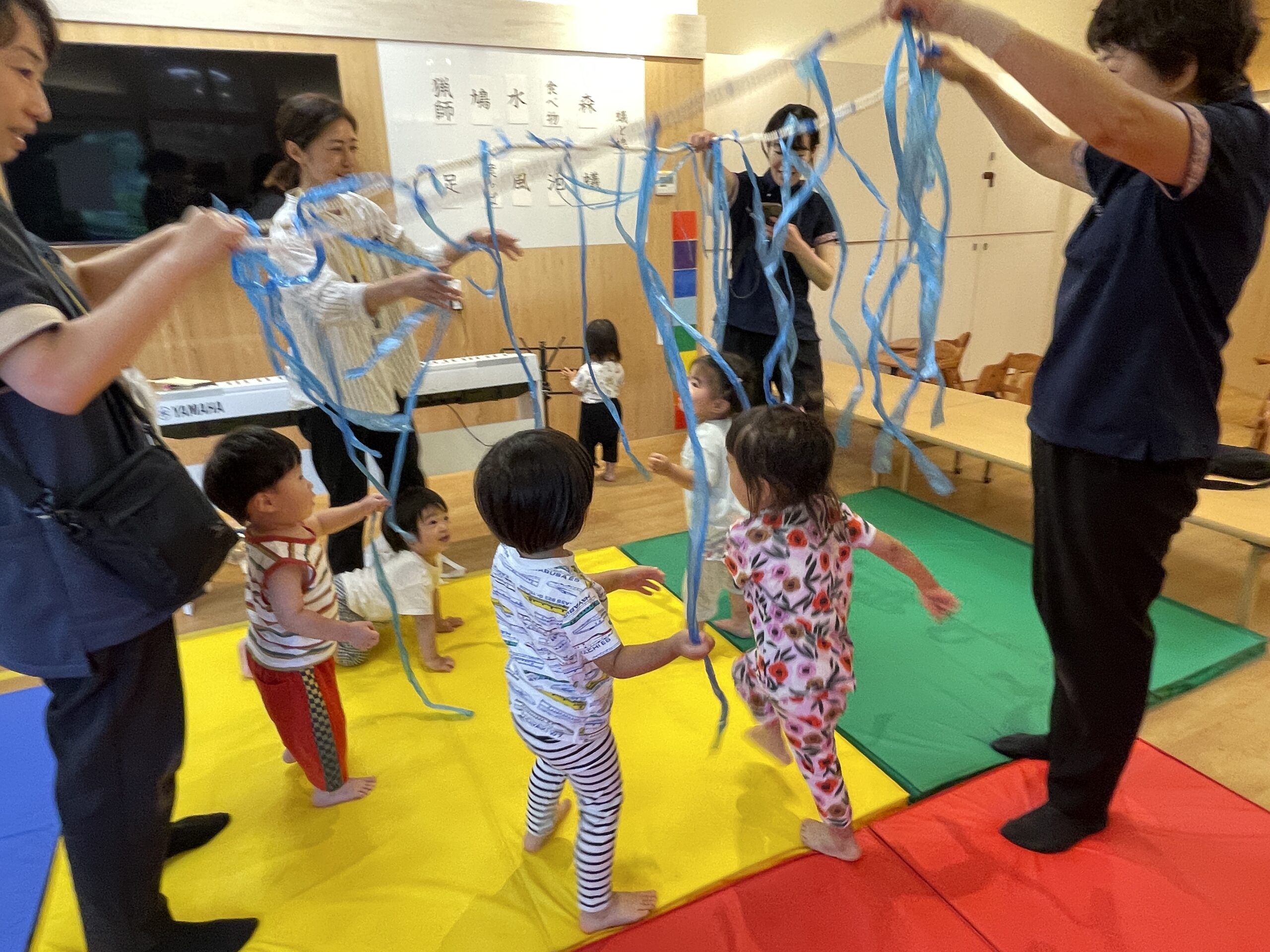 同時に色々な感覚を使って遊べるのも、音楽あそびならでは!だと思いますので、