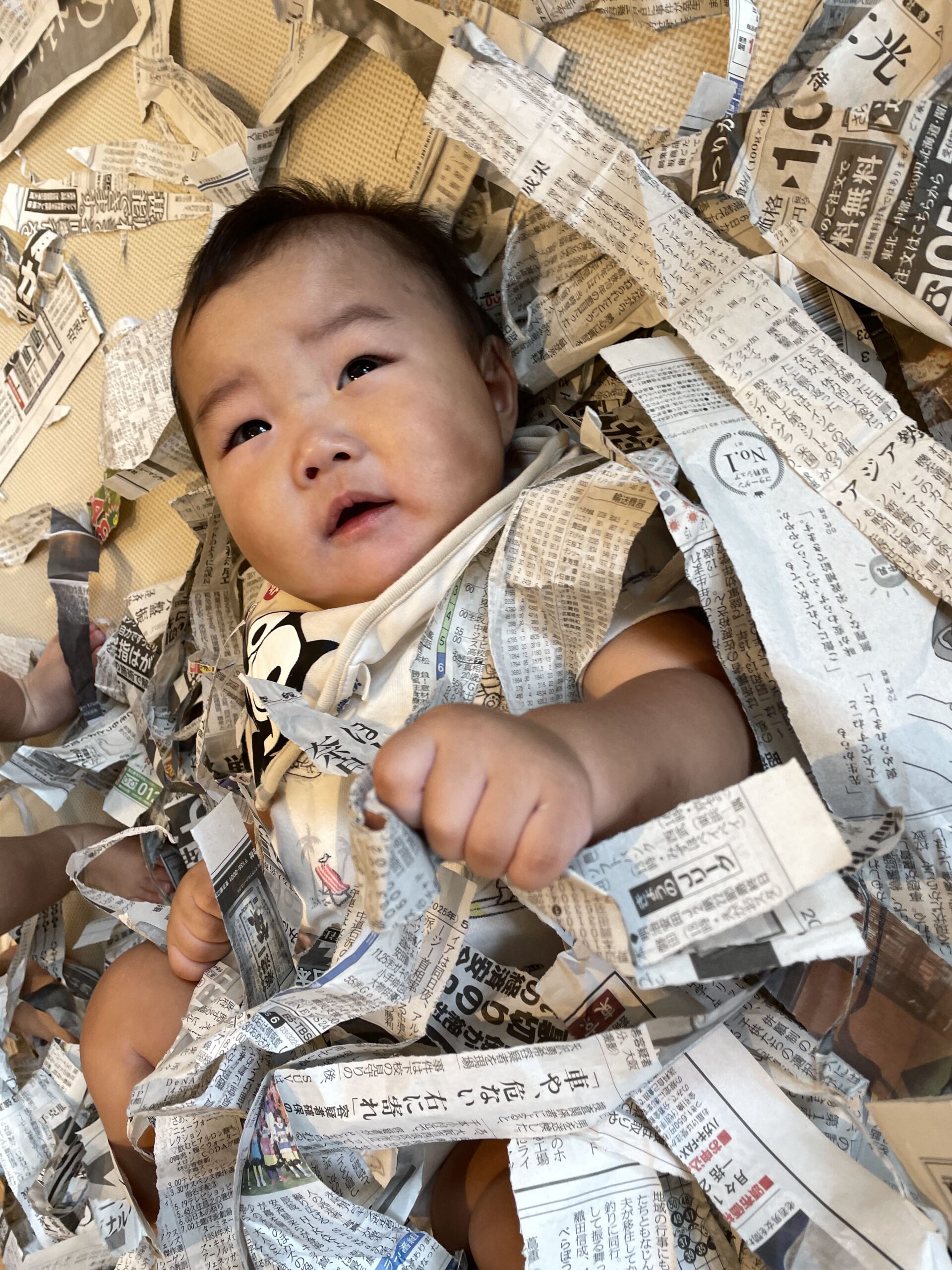 新聞紙一つでも、子どもの発想は無限大!まさに、毎日が発見と笑顔の連続です。