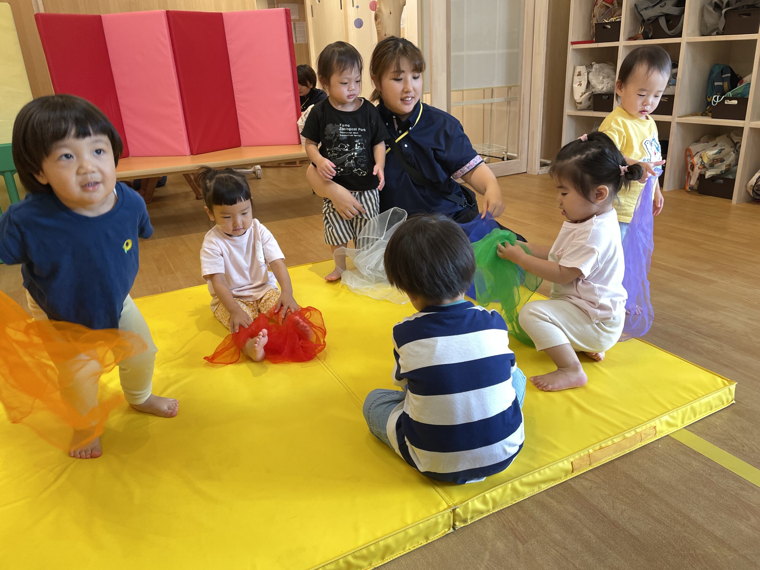 全身でスカーフを笹の葉に見立てたり、お星さまや流れ星を作ったり☆