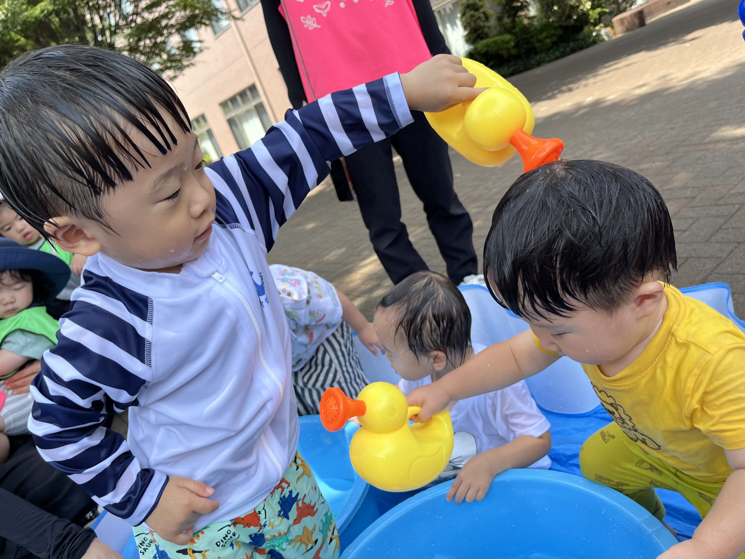 なかには、お友だちが楽しそうにしていたから水をかけてあげる姿もありました。