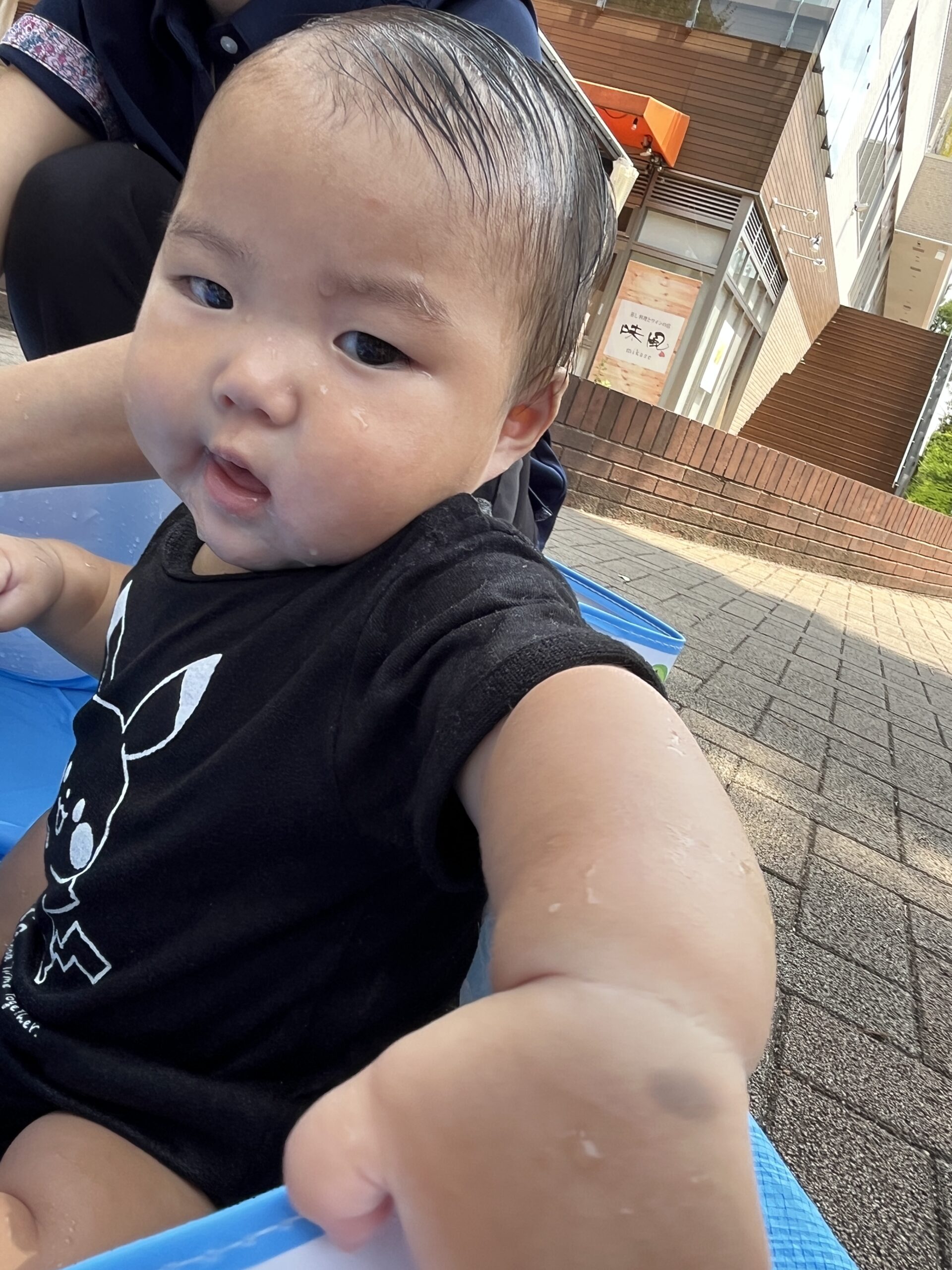 そんな暑さの中、こまめに“たくさん水分補給”をしながら、元気に水遊びをスタートしました。