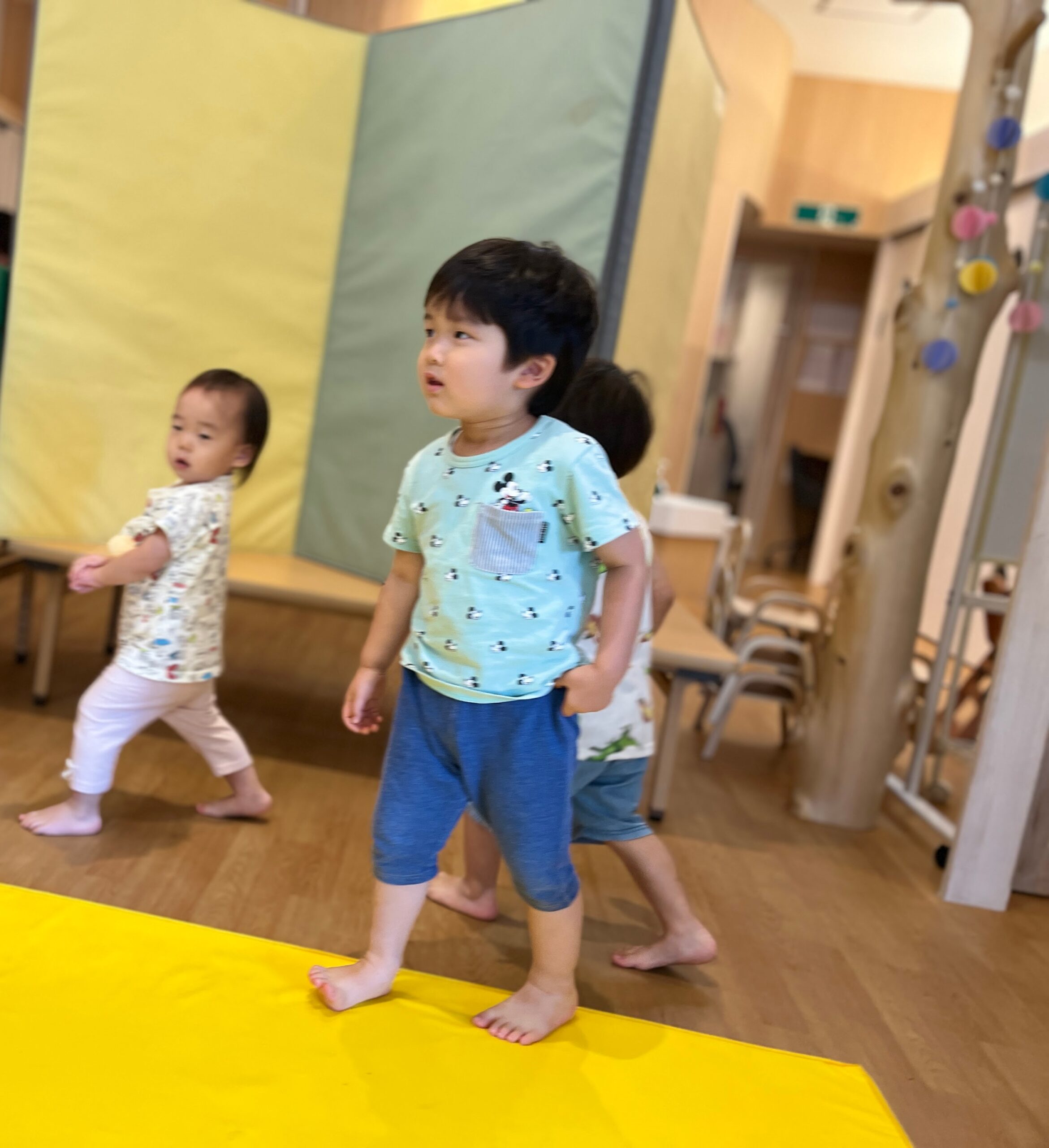 お散歩リトミック、今日も元気いっぱいに、ピアノに合わせていちに、いちに♪
