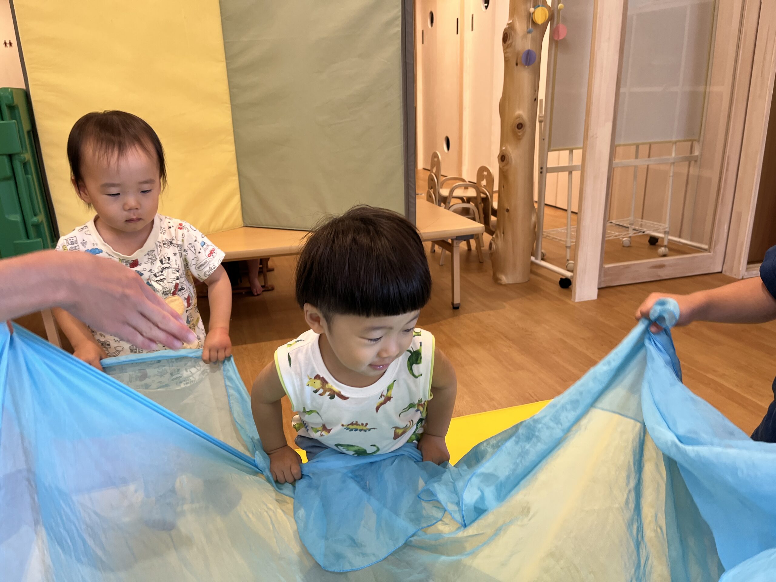 大判スカーフ、青空組さんもしっかり握って持つことができましたね♪