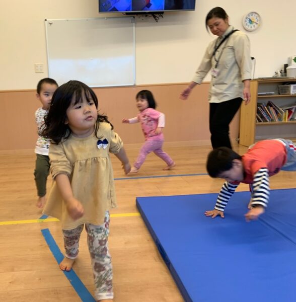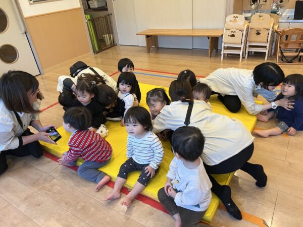 お友達をこちょこちょしたり、ギューッとしたり、スキンシップでたくさんの笑顔が見られました♪