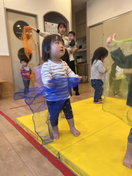 最後は空高く、それーっと投げます。視覚的にも音のフレーズを感じて動くことが出来ました♪