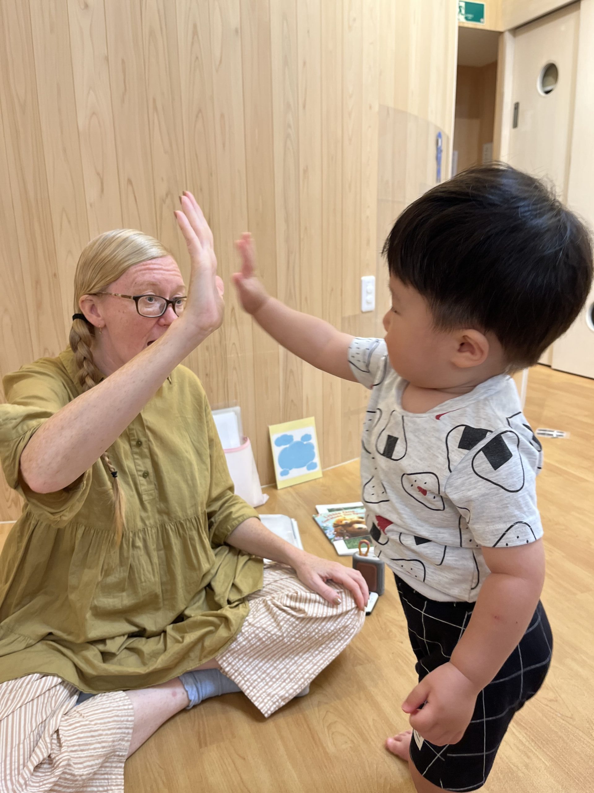 大好きなアンジー先生に照れてしまう始まりですが、今日はみんなニコニコ~楽しいね!の気持ちが溢れます♬