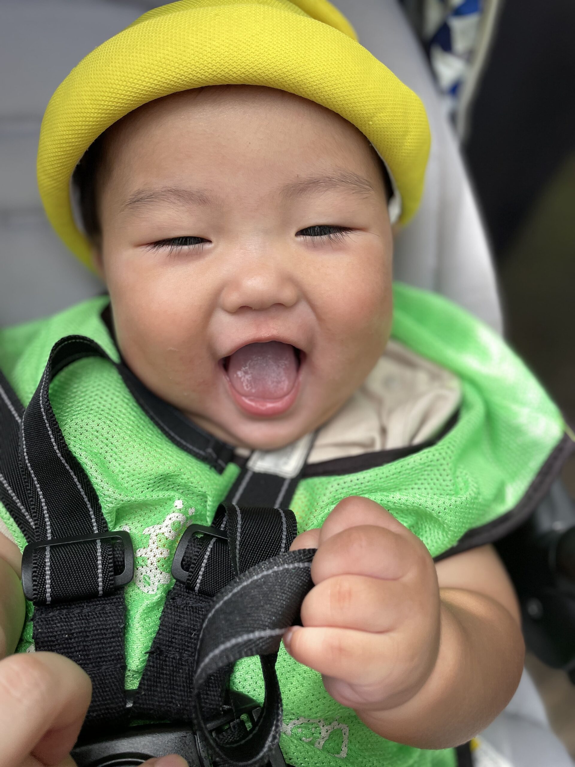 英語遊びの途中から参加したお友だち。おはよーのご挨拶に、みんなにっこり♡可愛らしい姿です。