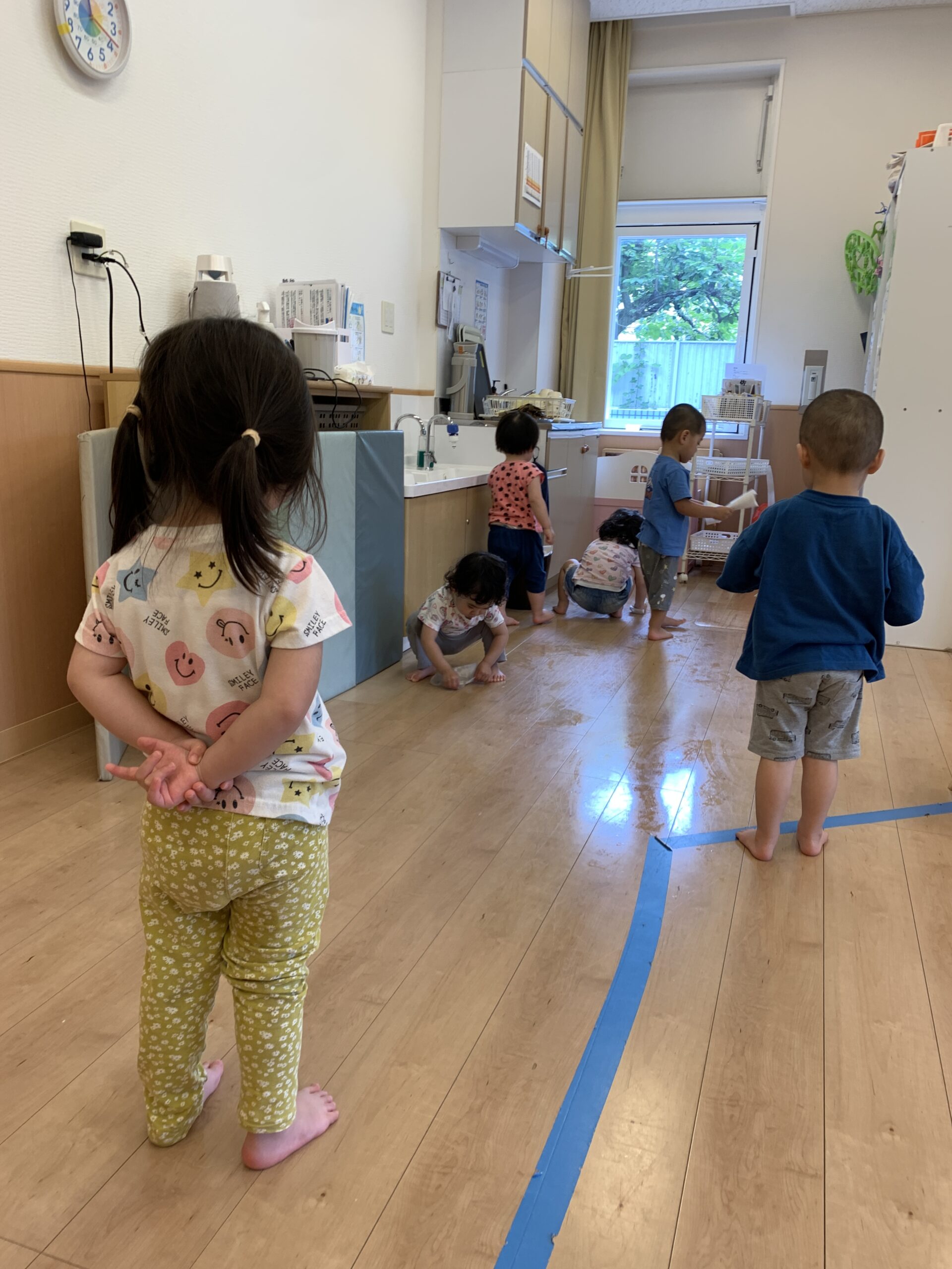 終わった後は指導官の下、こぼれたお水はみんなで拭いてくれました!
