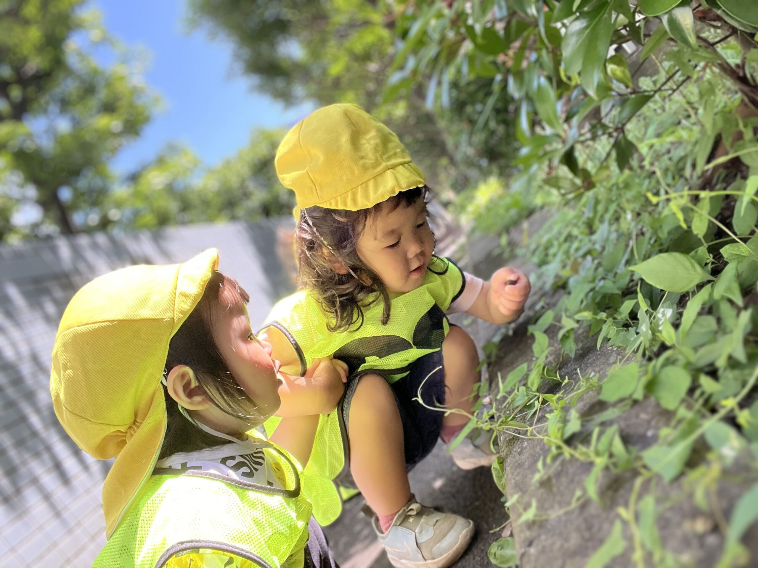 今日は、太陽の光がたっぷり射し込む気持ちの良い一日でした。まずはテラスに出て、みんなでわくわく虫探しタイム!ぽかぽか保育園では、自然に親しむカリキュラムを大切にしています。