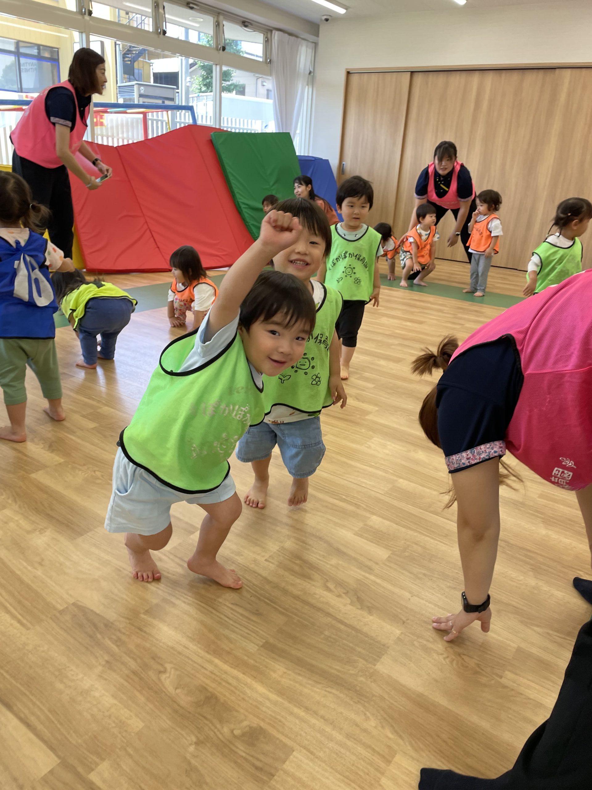 今日は気持ちよく晴れて、園の窓からは明るい日差しが差し込んでいました。こんな日は、子どもたちの元気もますますパワーアップ!