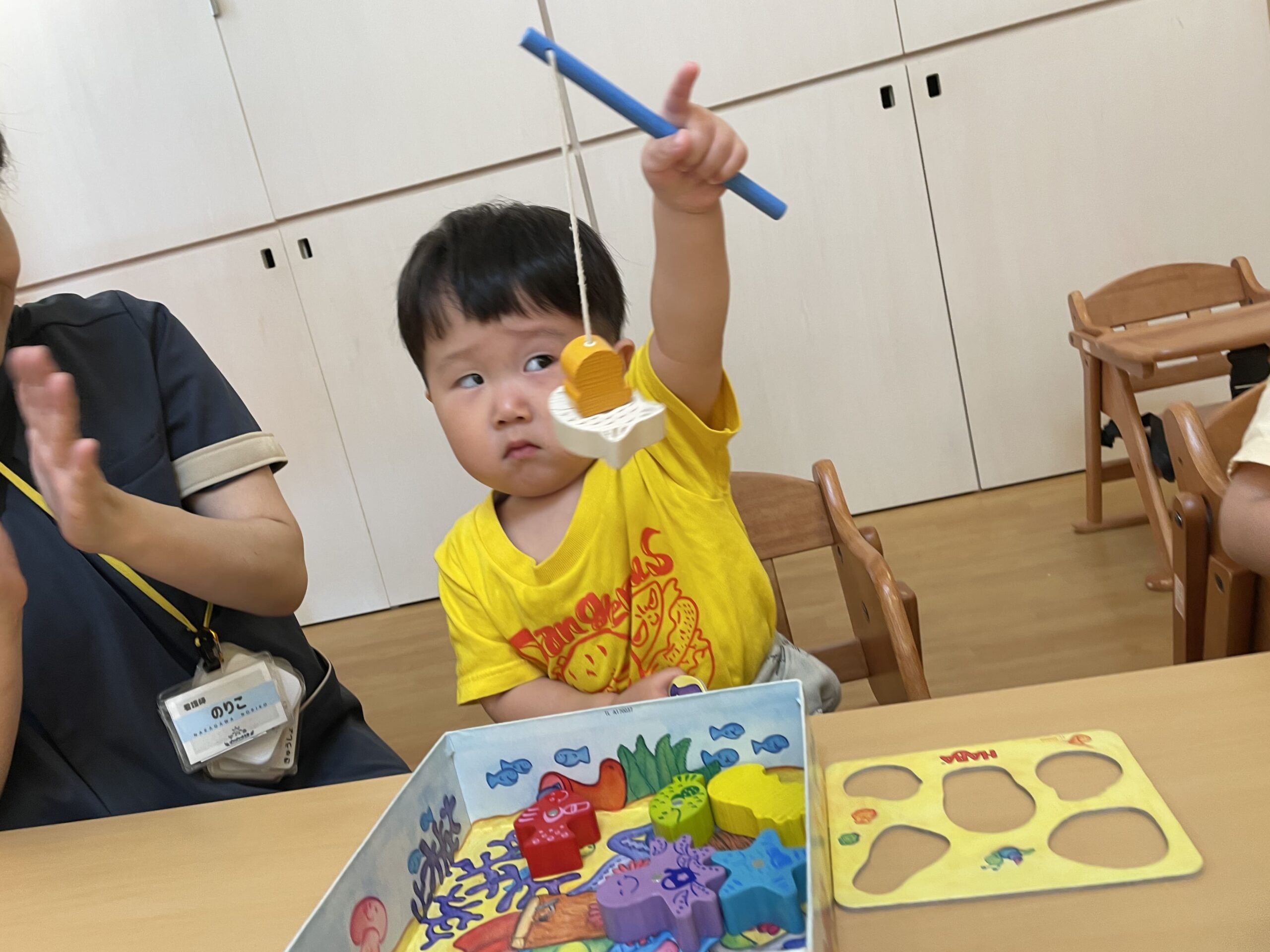 そして、今日は驚愕のエピソードも!子どもが“やりたい!”と自分から魚釣りの竿を握り、じーっと集中してカラフルなお魚を見事に釣り上げたんです。