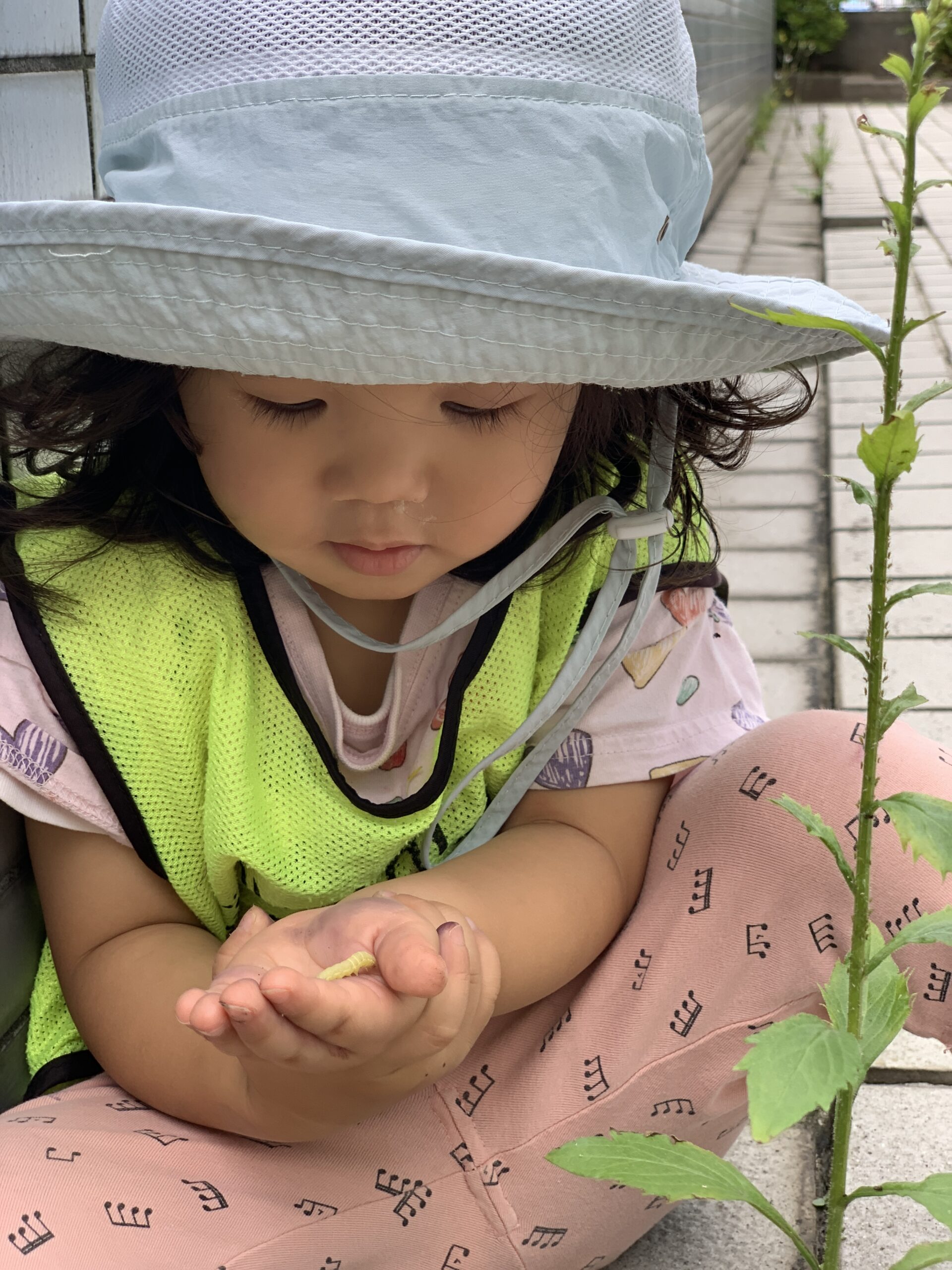 音楽のあとはテラスに出て、虫探し探検隊スタート!