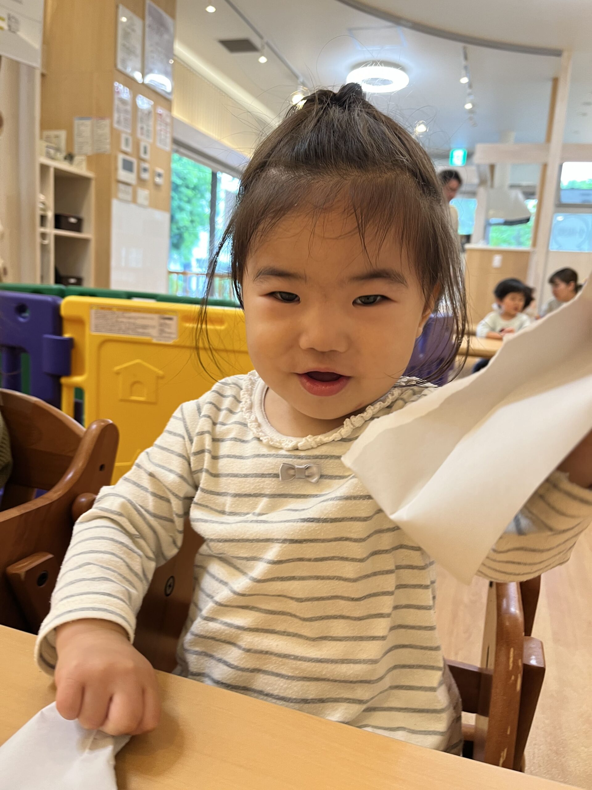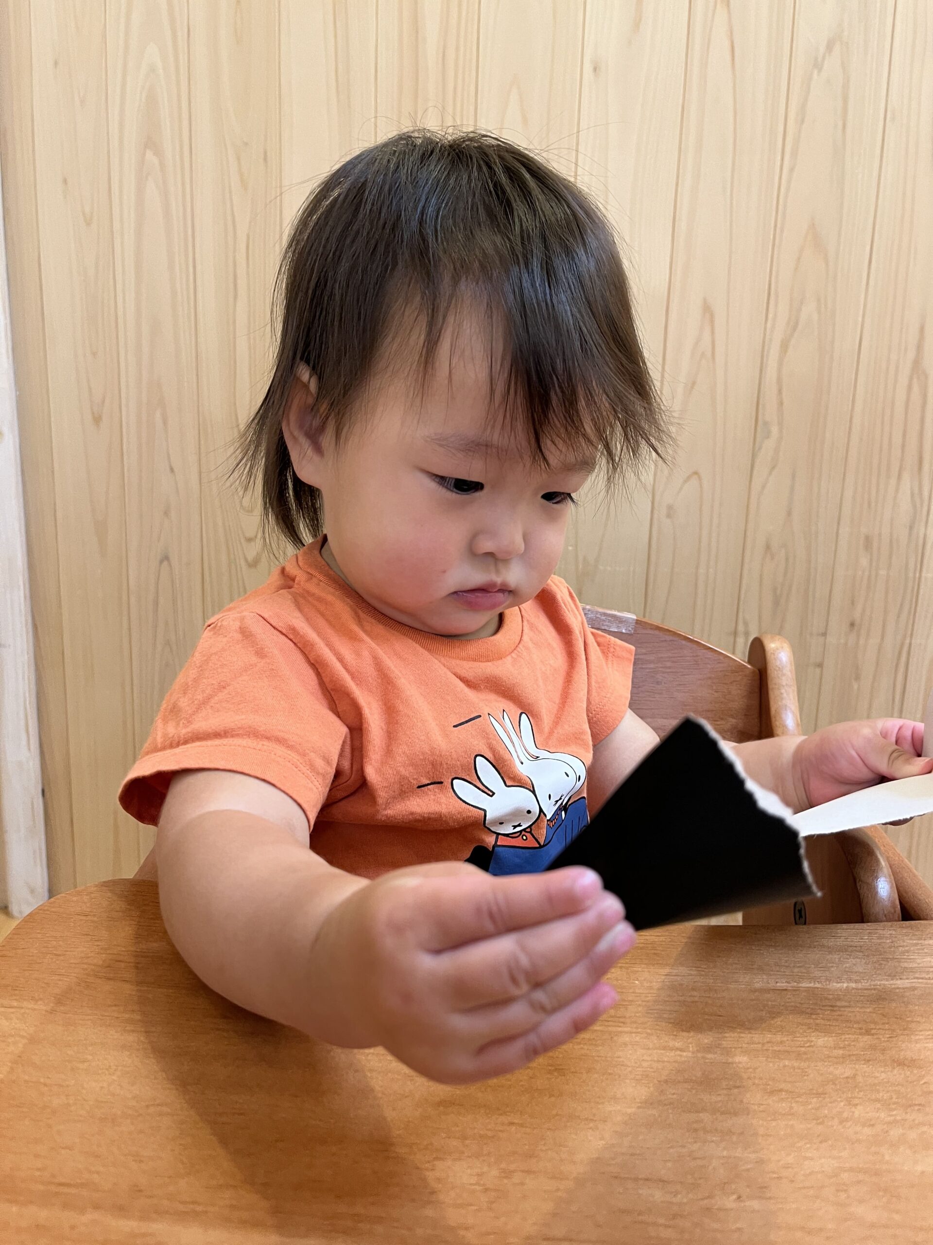 少し切れ目をつけて渡すと上手にビリビリ出来ました!