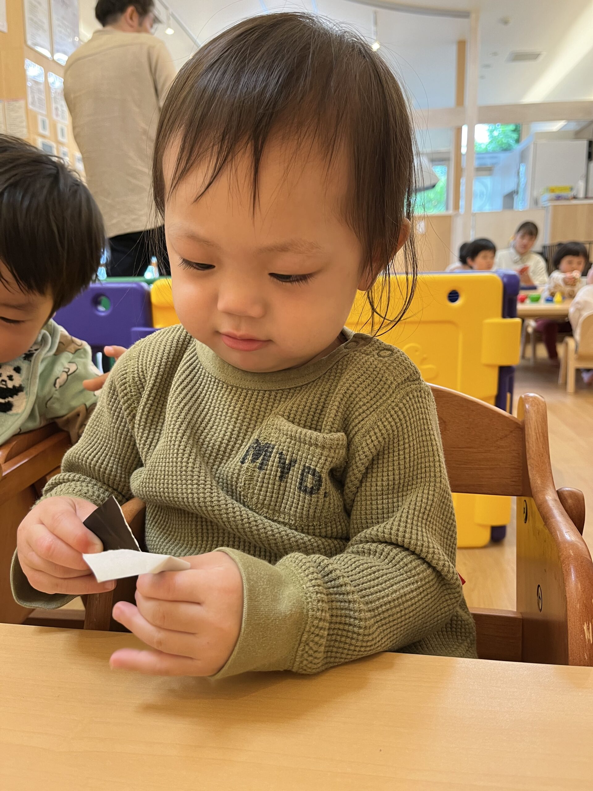 細く破いたり細かく破いたり指先の使い方がとっても上手でした!