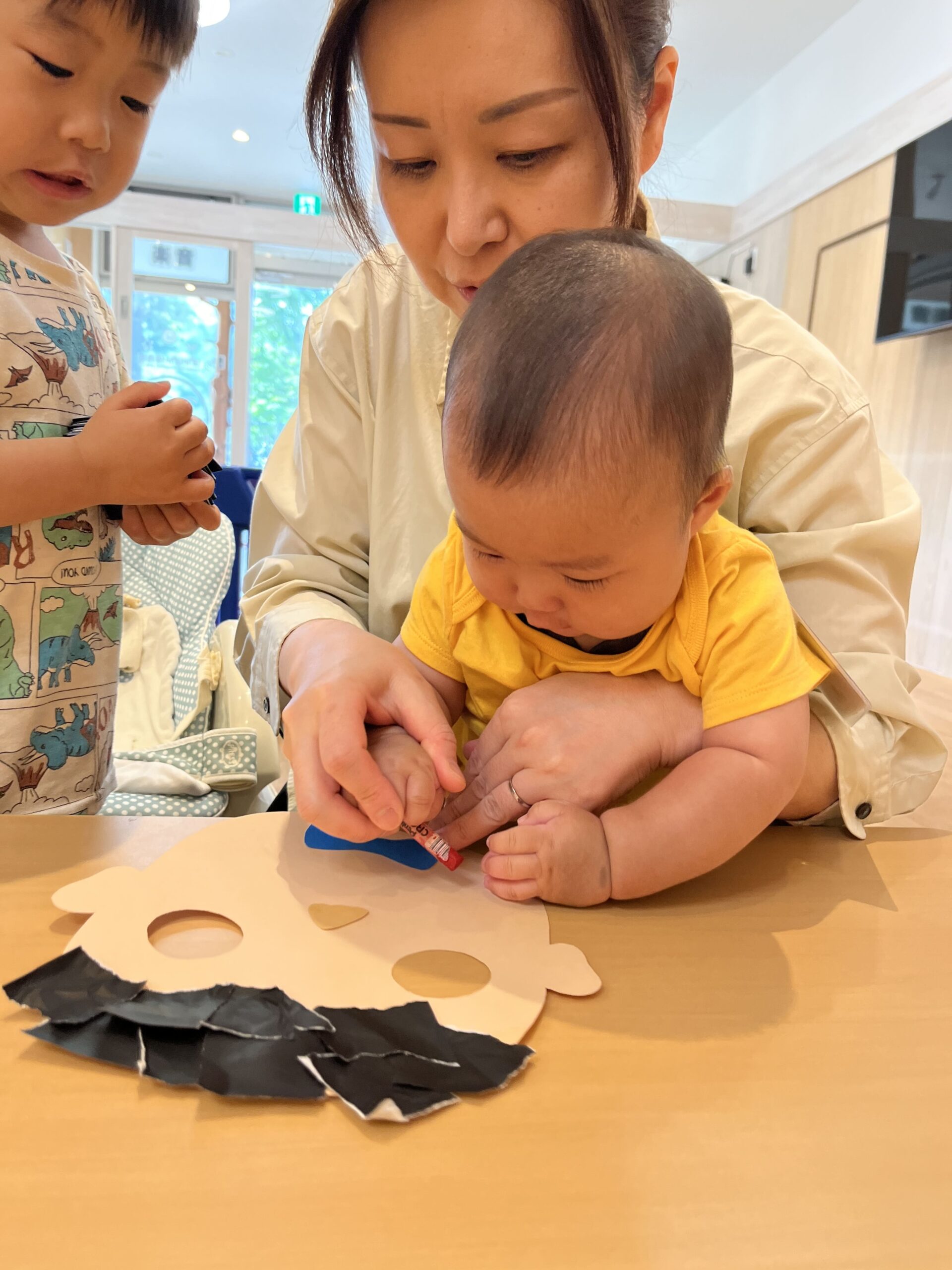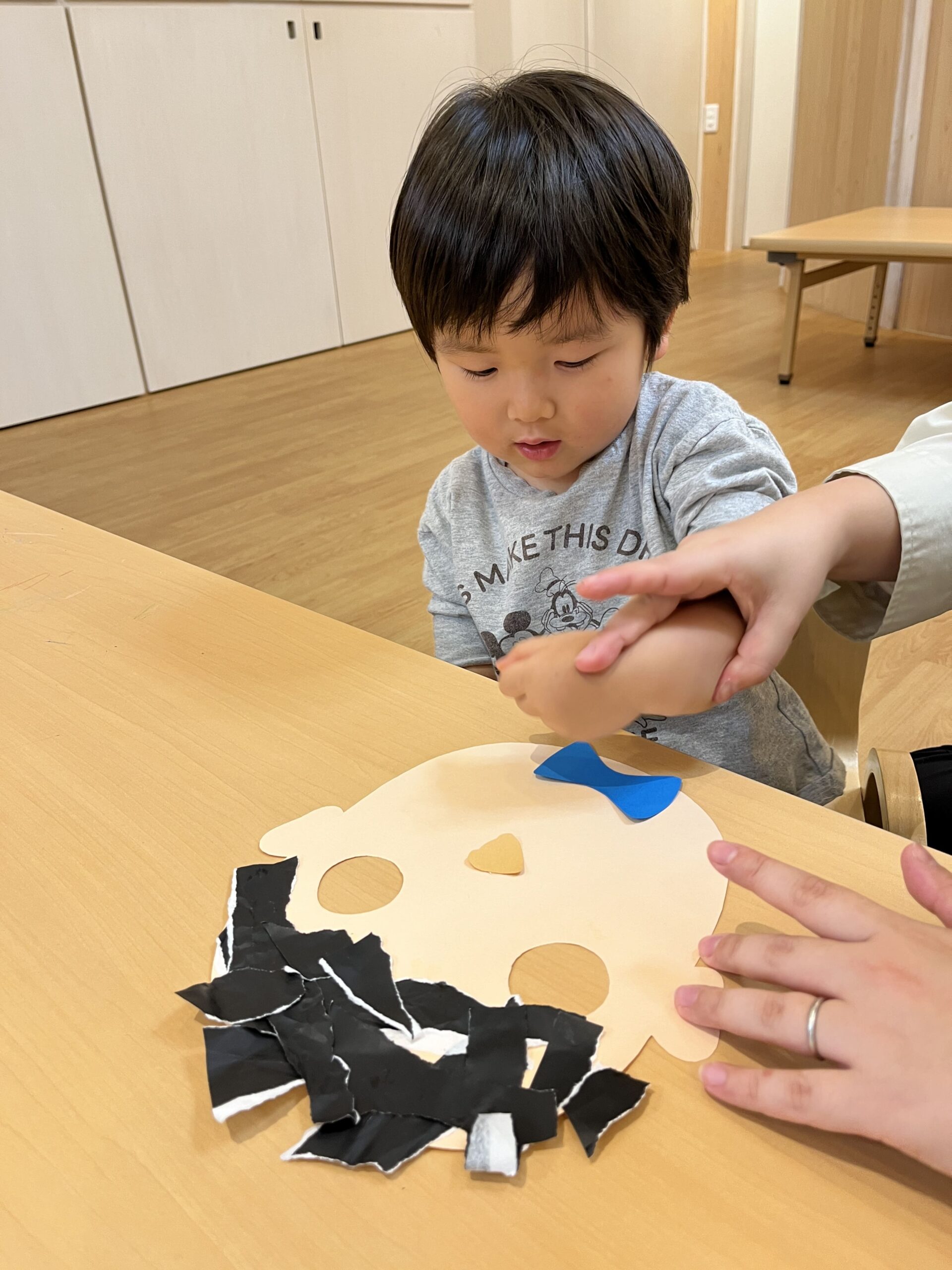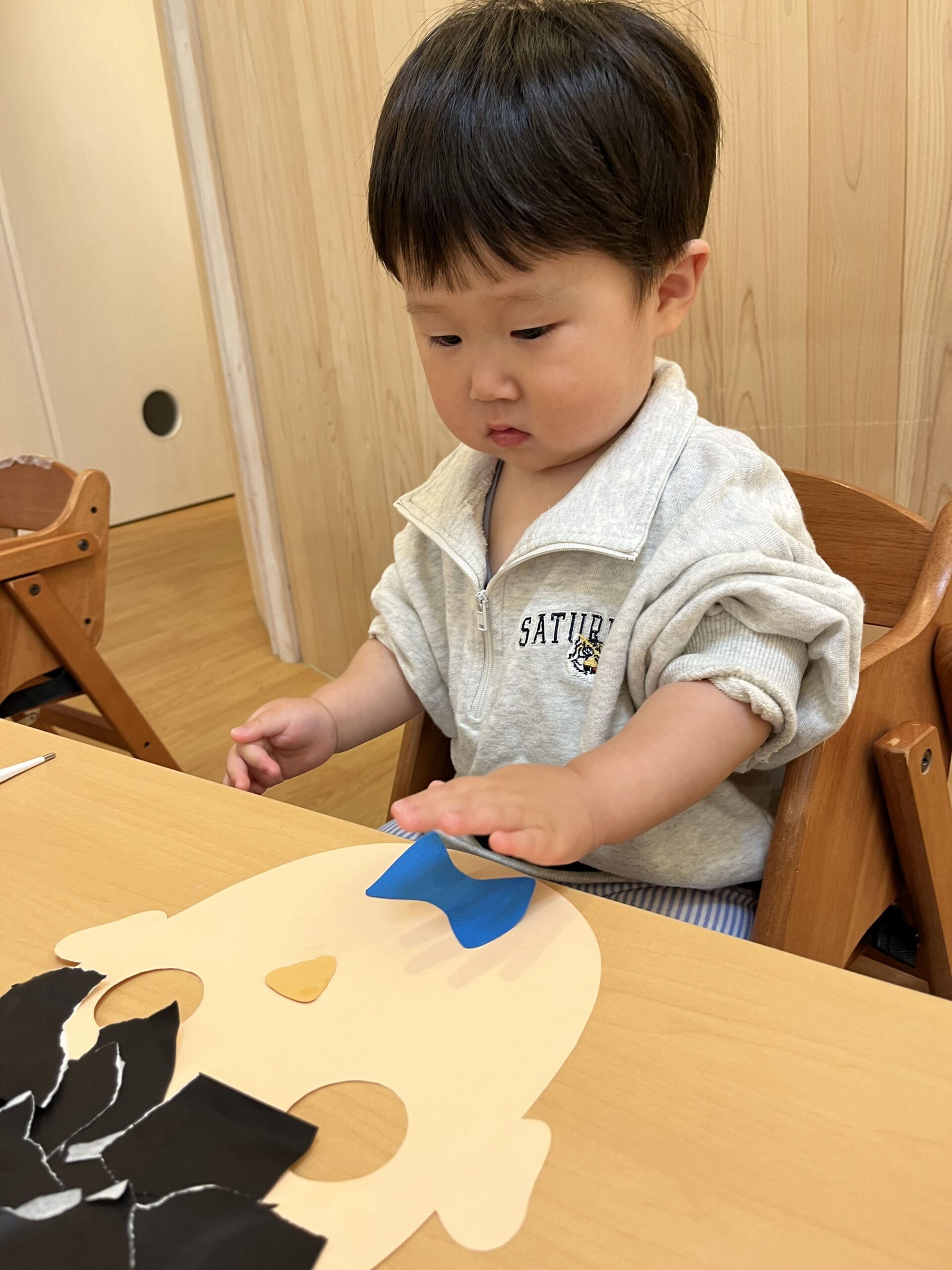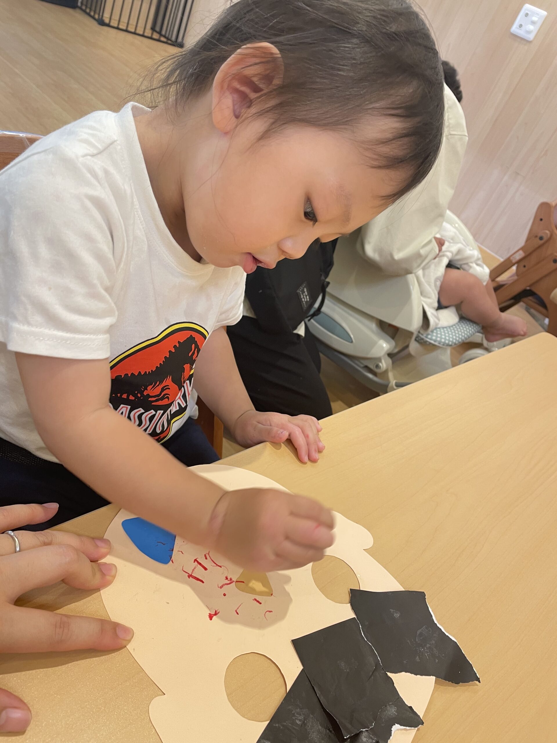2歳児さんは糊が苦手な子が多かったですが、先生のサポートでぺたん!と頑張って張り付けてくれました♡