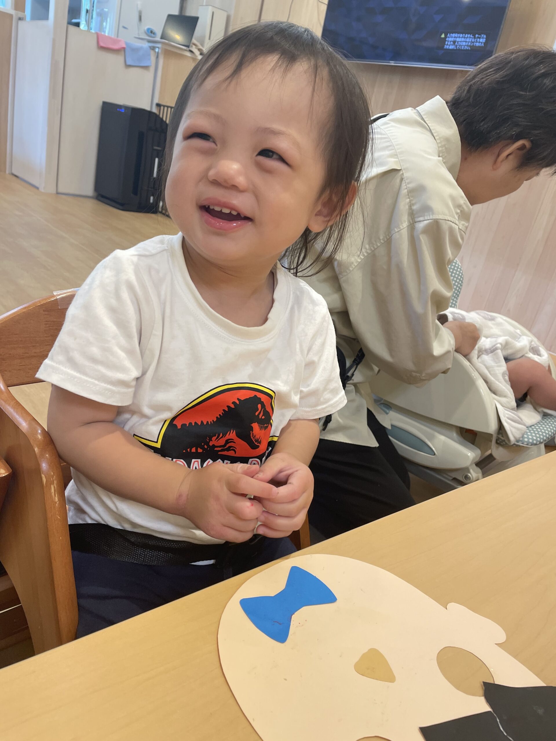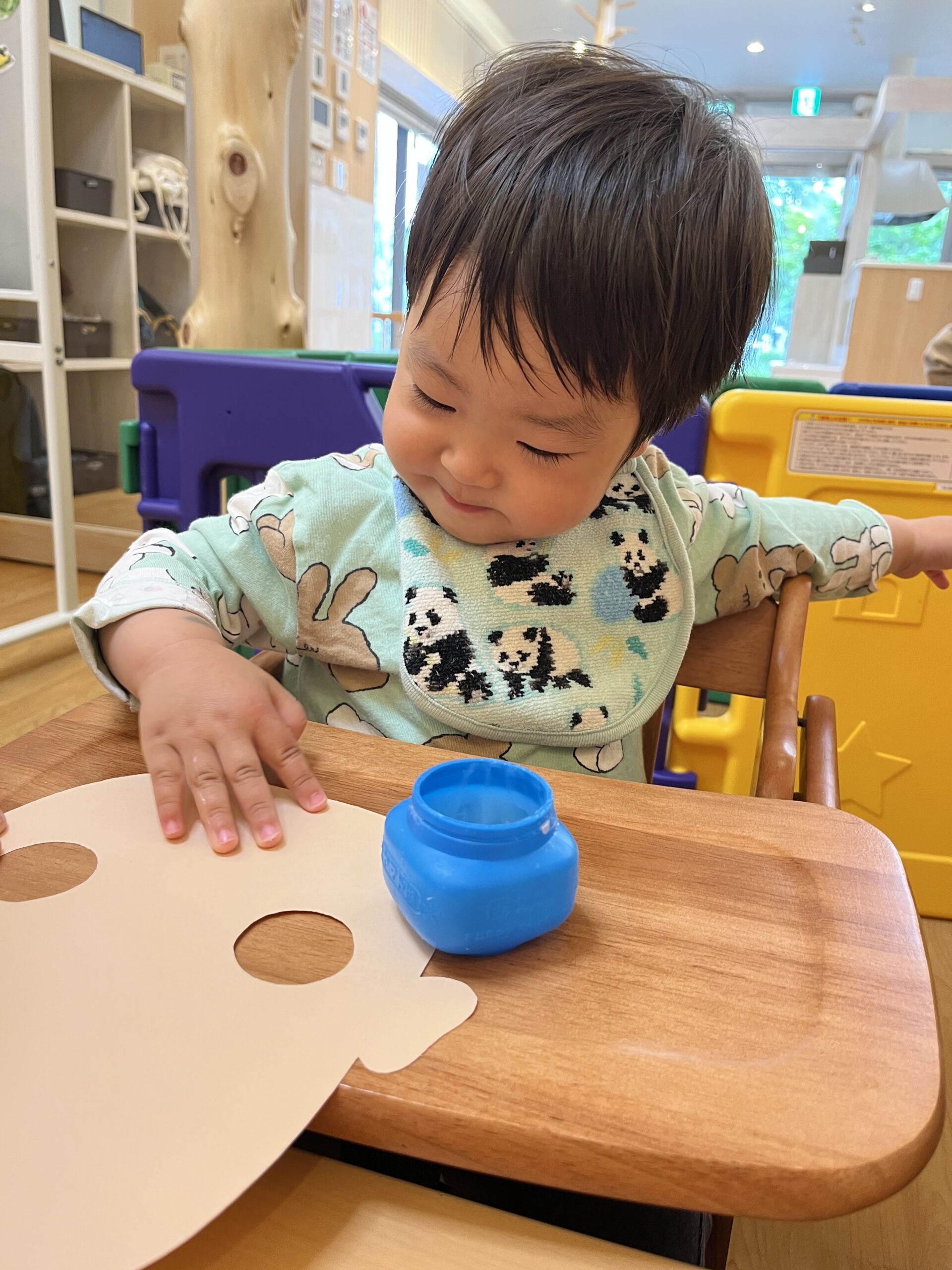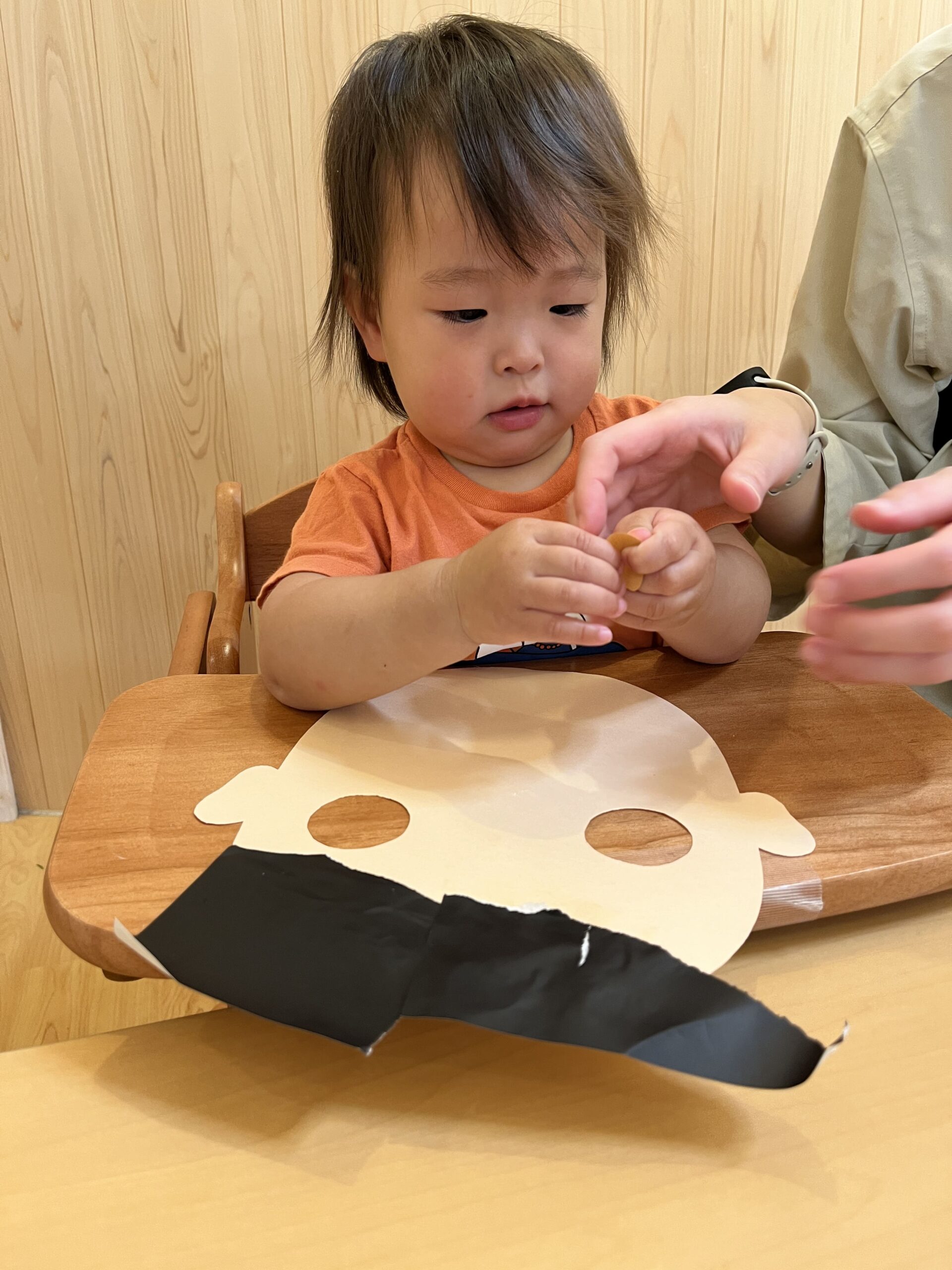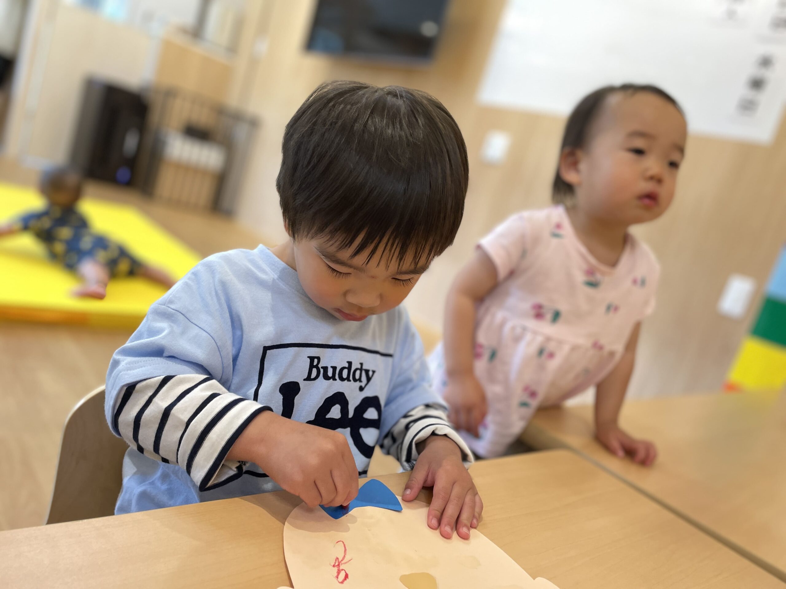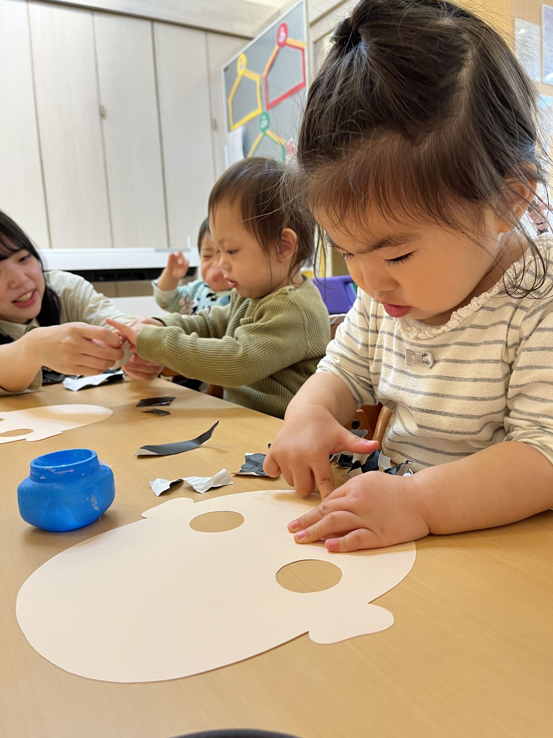 2歳児さんは糊が苦手な子が多かったですが、先生のサポートでぺたん!と頑張って張り付けてくれました♡