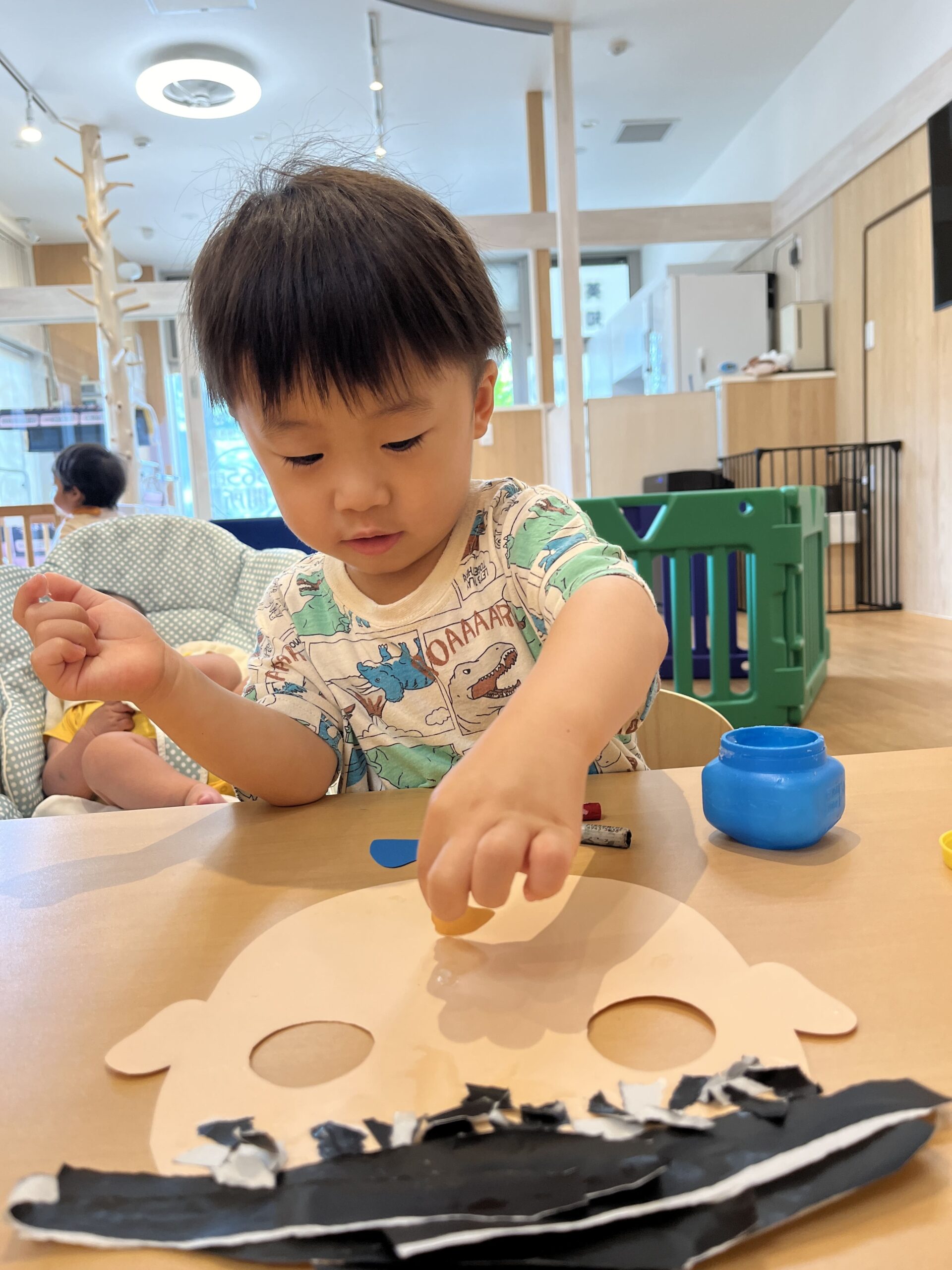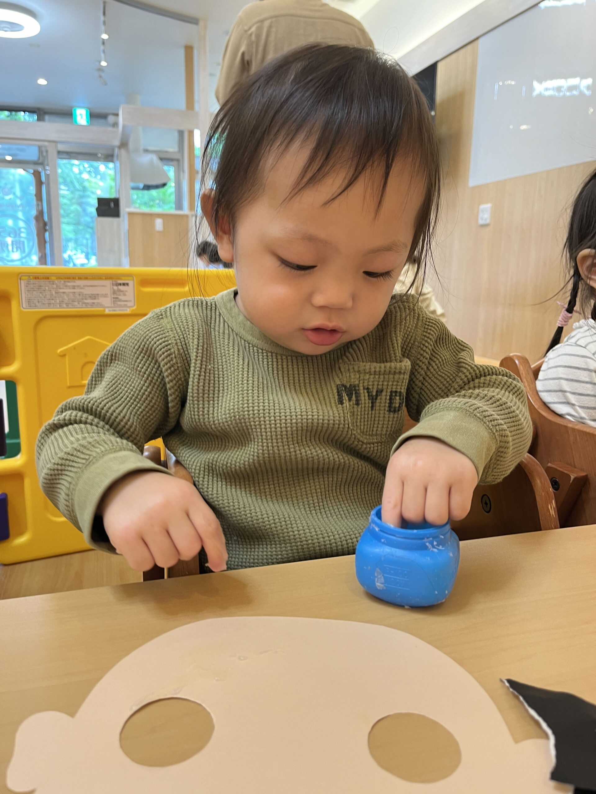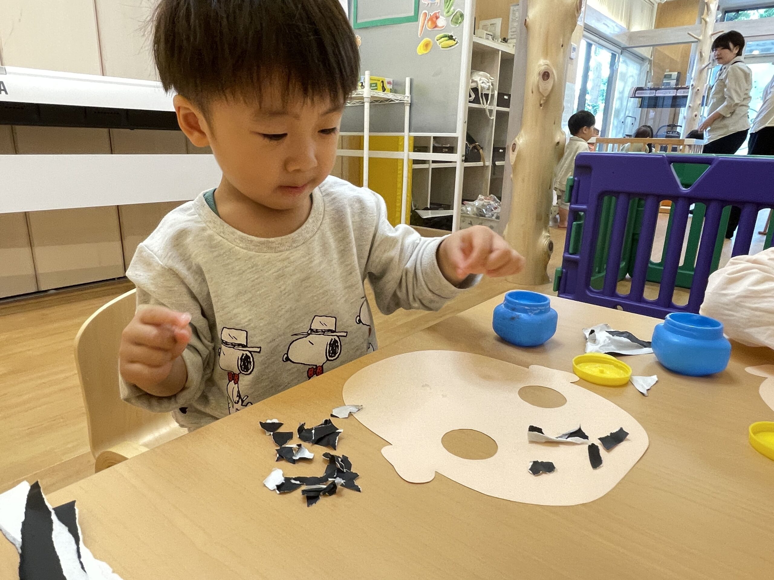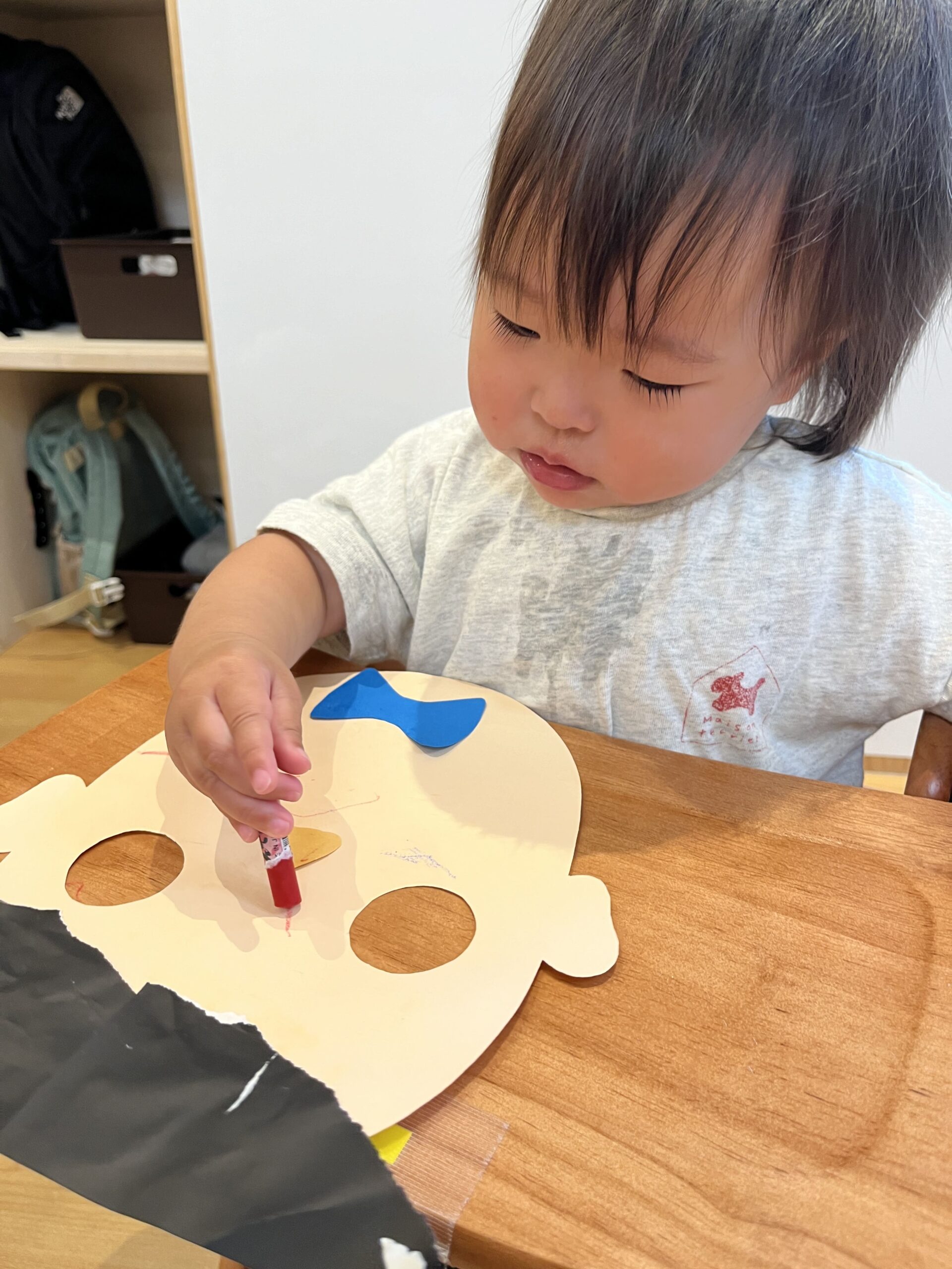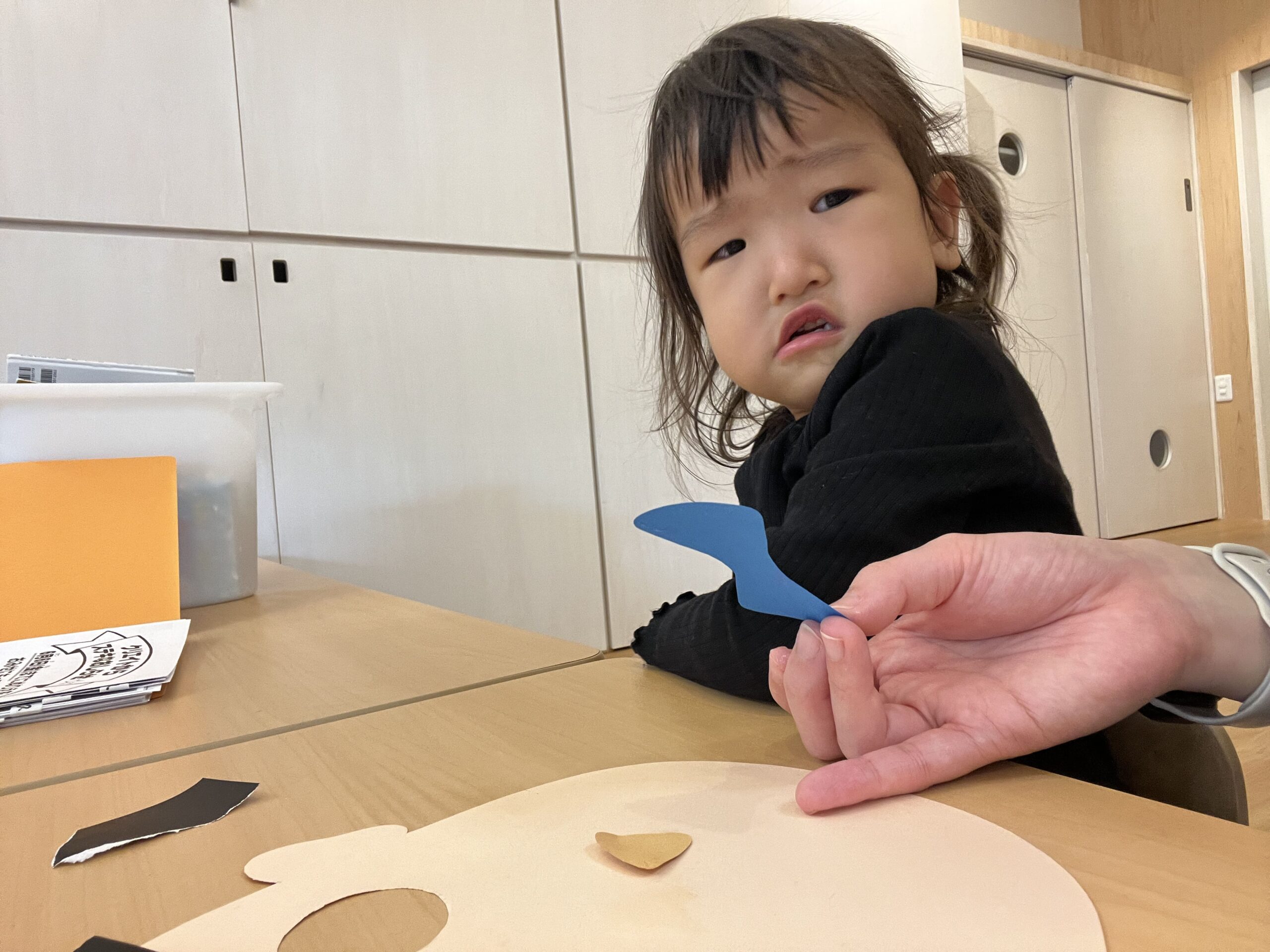 2歳児さんは糊が苦手な子が多かったですが、先生のサポートでぺたん!と頑張って張り付けてくれました♡