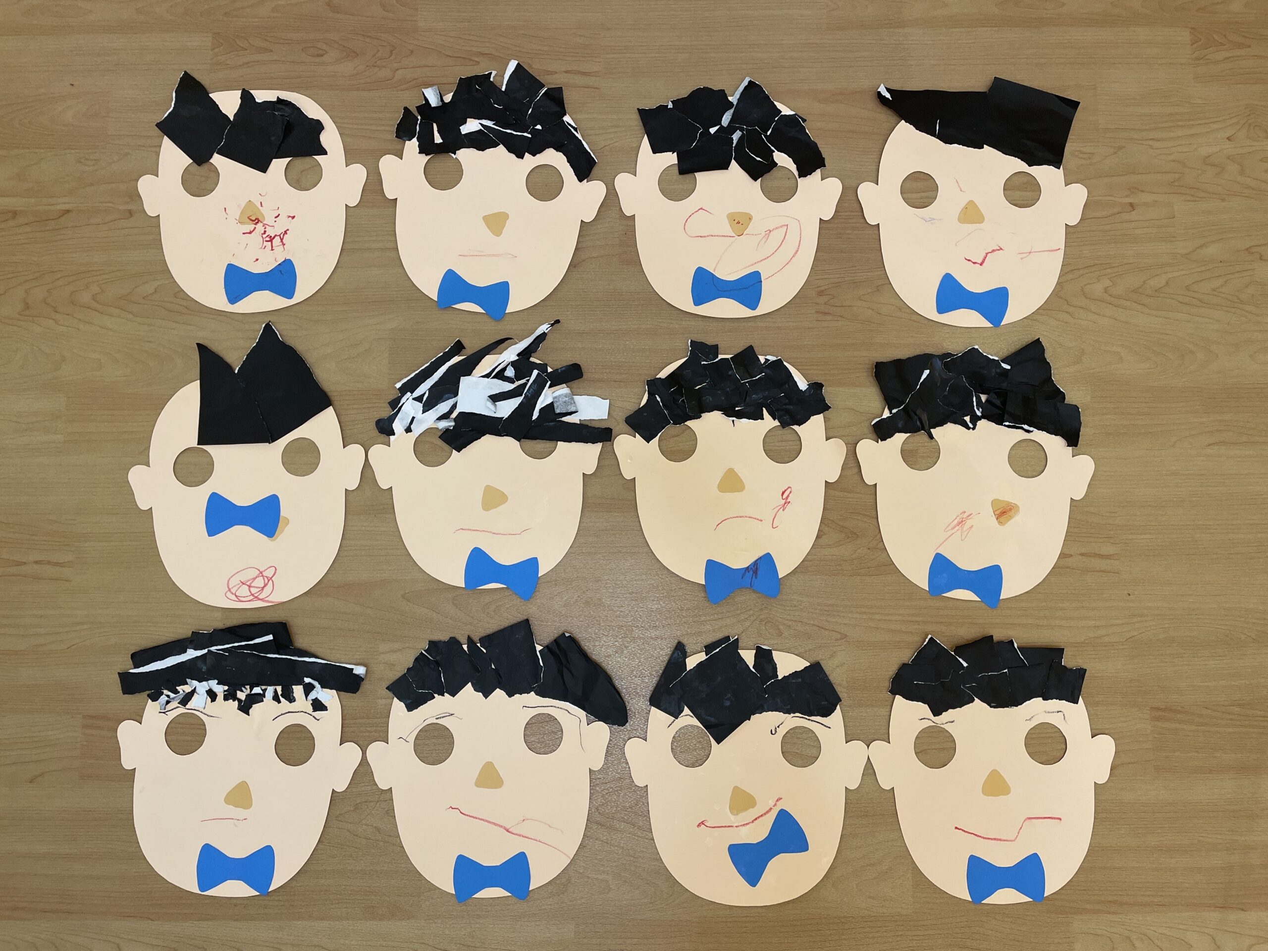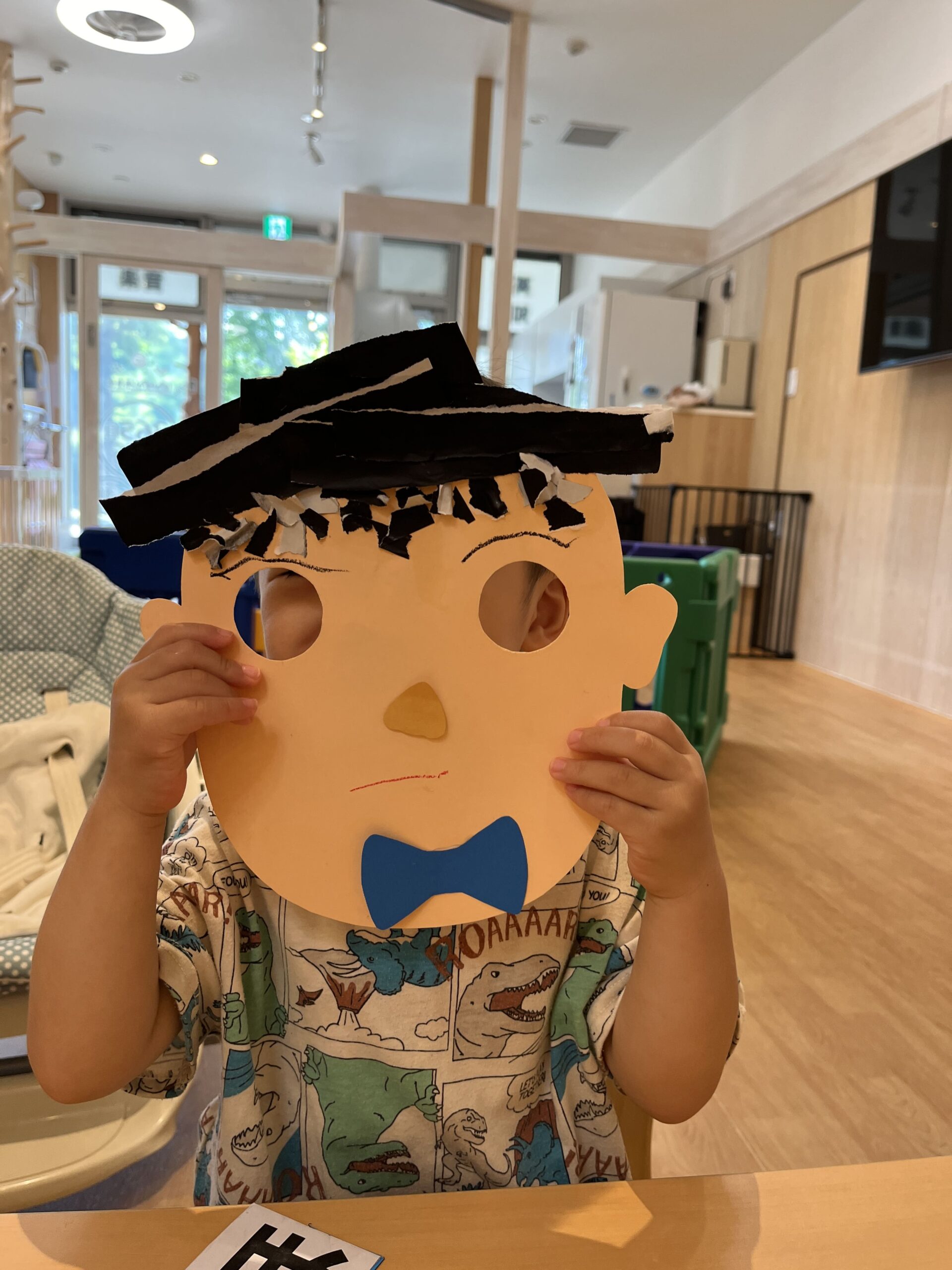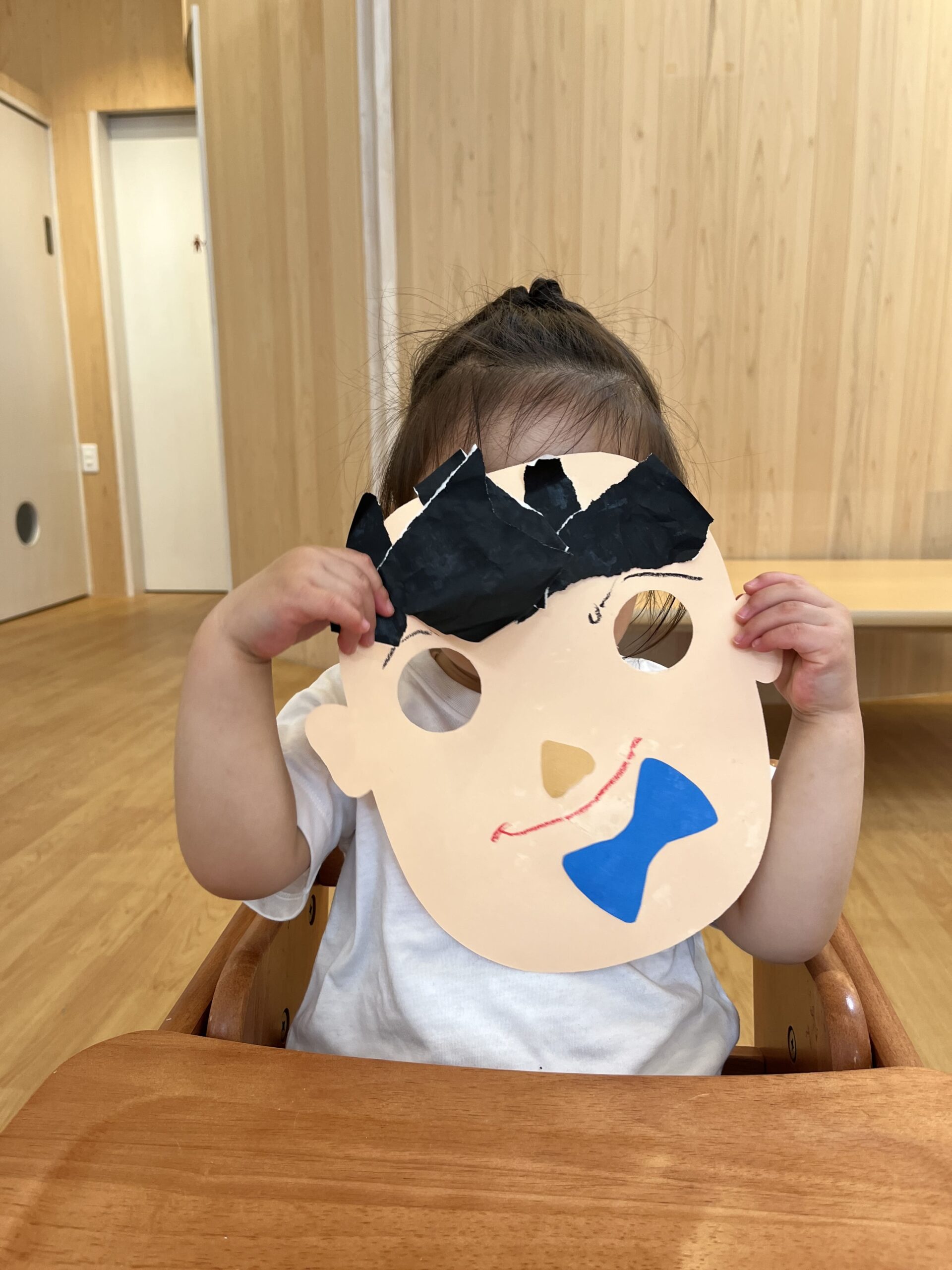 出来上がったお面で大好きなお父様に変身してみてくださいね。