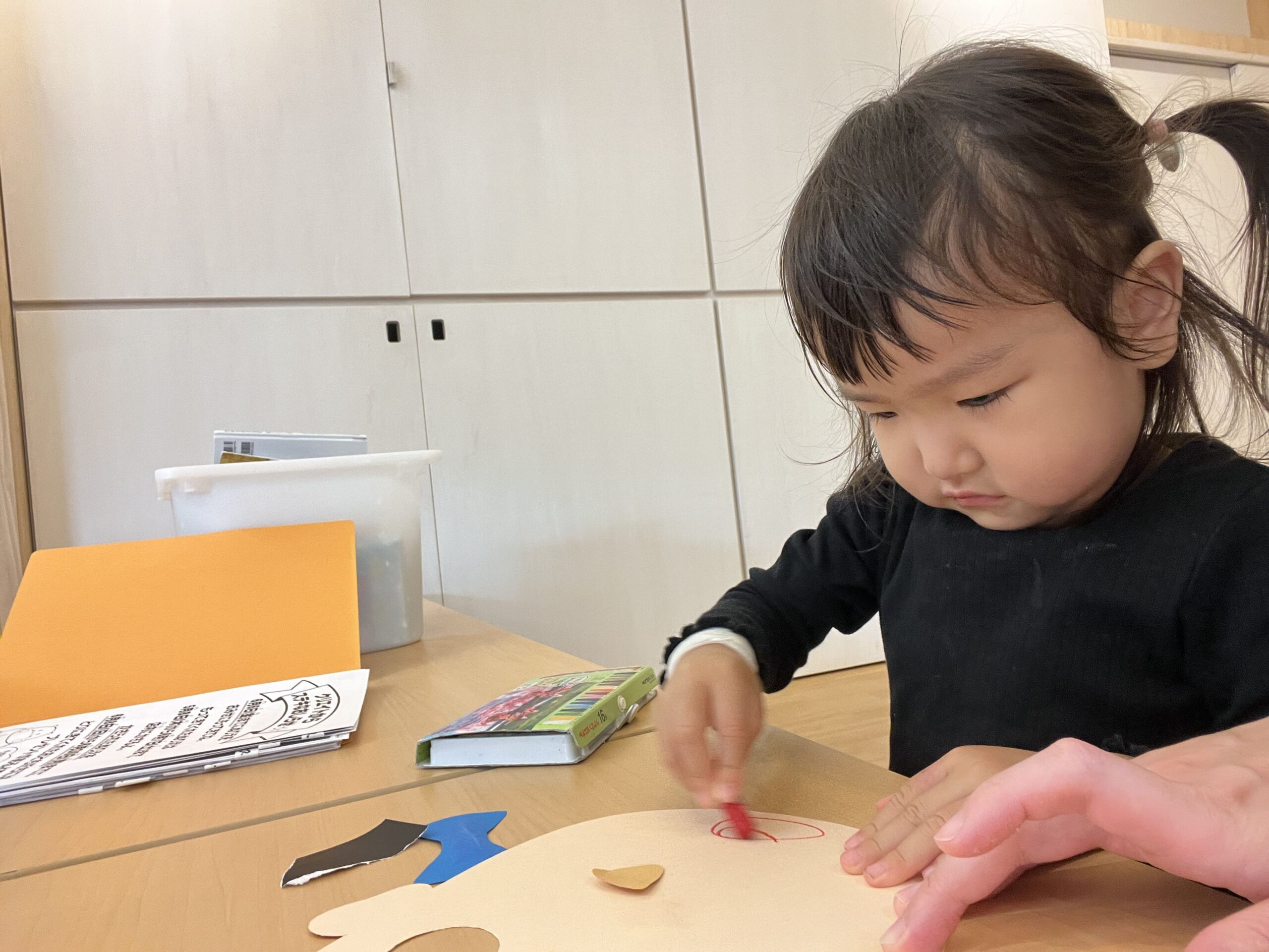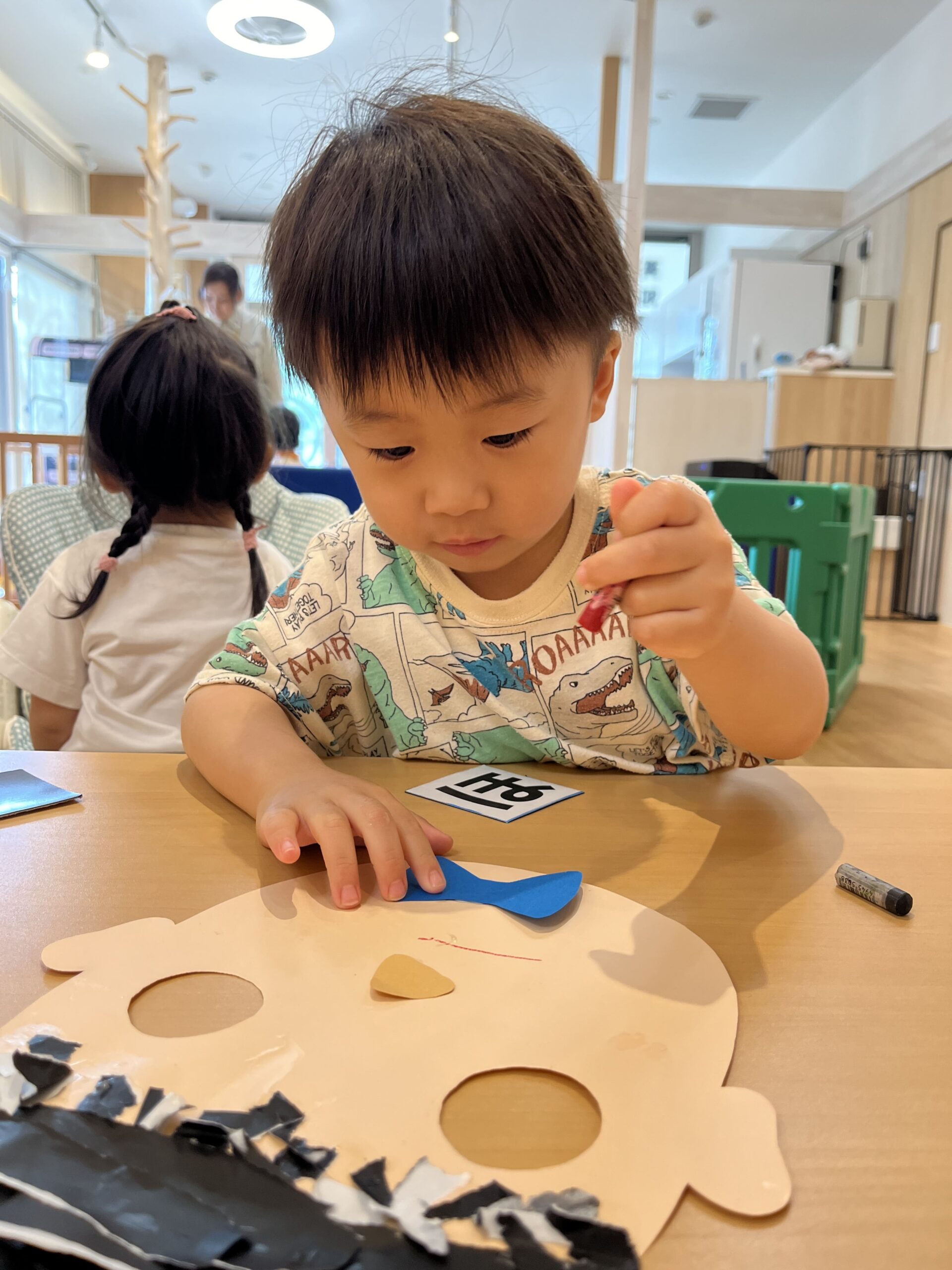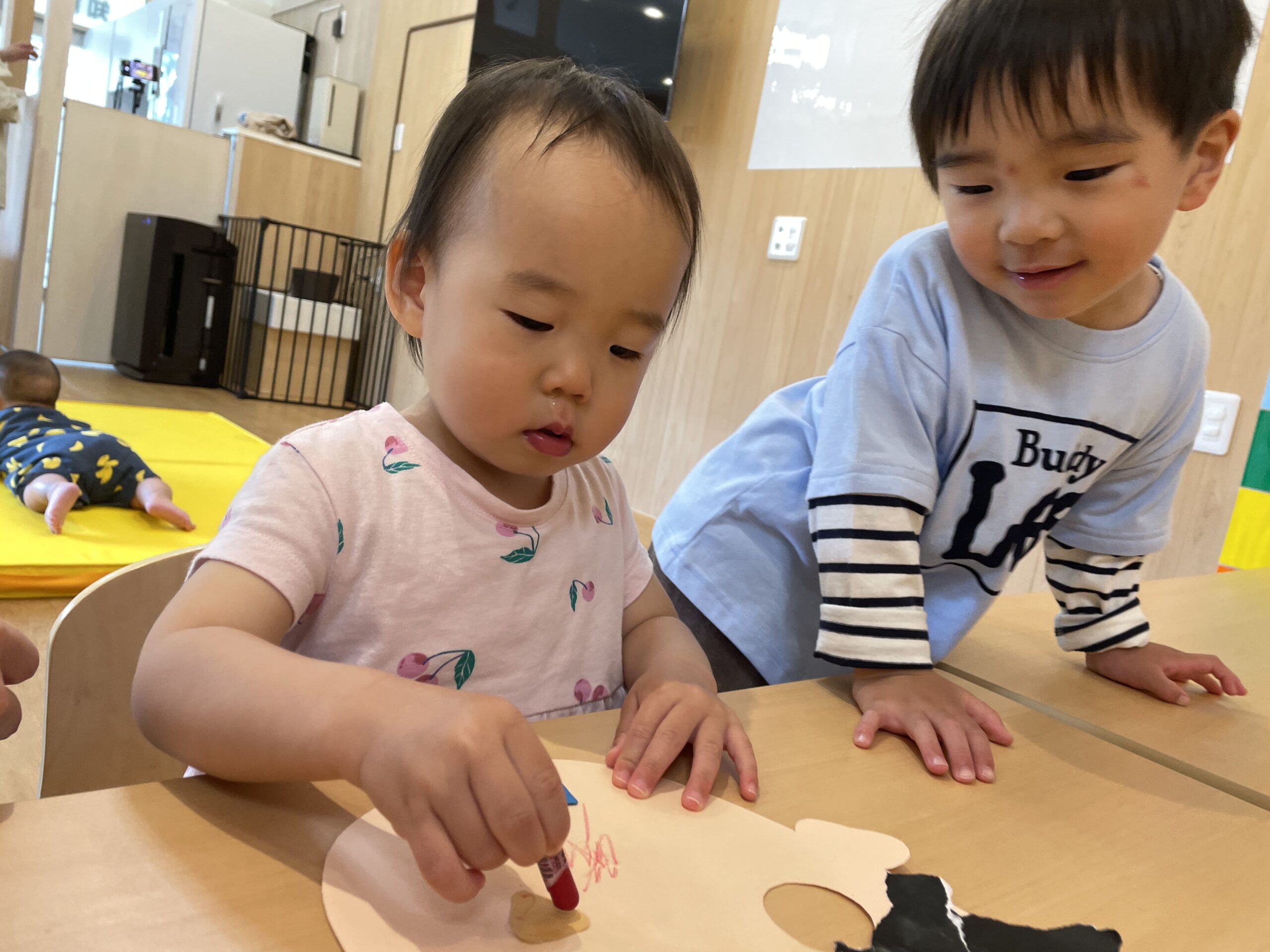 みんな大好きクレヨン🖍先生に手伝ってもらったり、自分で描ける子は頑張ってみたり。