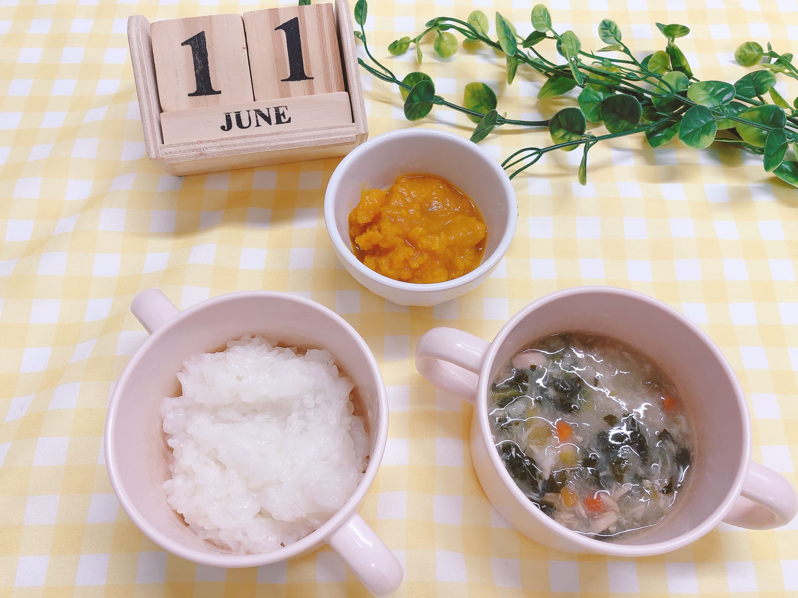 にんじんの自然な甘みとグリンピースのコロコロ食感が楽しくて、スプーンを口に運ぶ手が止まらない様子でした♪