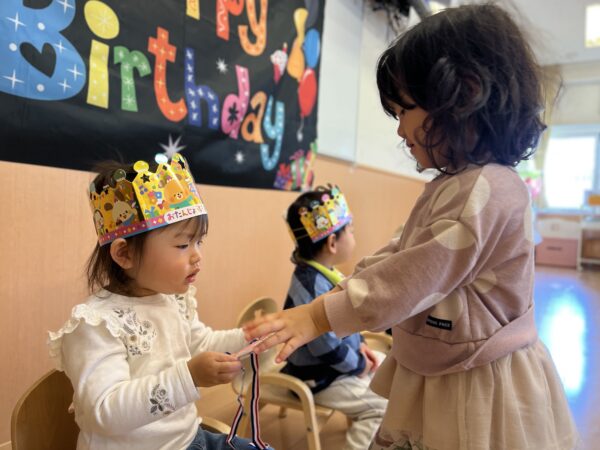 乳児保育の段階から、みんなでお祝いする喜びや、お友だちを大切にする心を育んでいます。