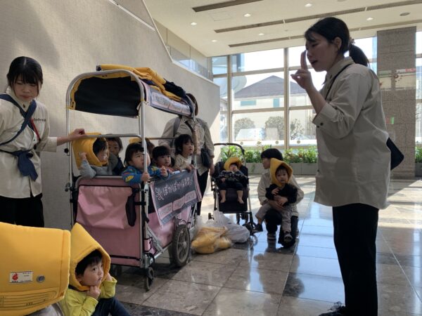 日頃から繰り返し訓練を行うことで、いざという時に落ち着いて行動できるよう、幼児教育の一環として取り組んでいます。